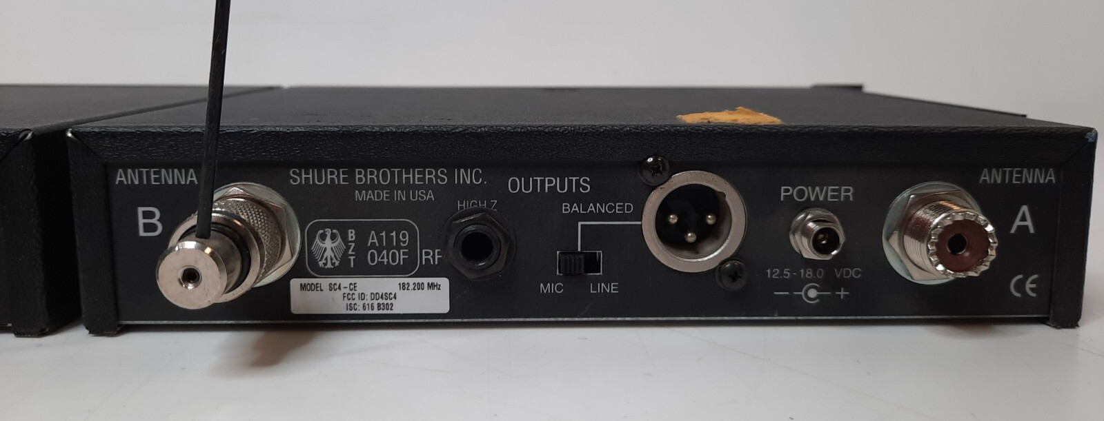 Lot of 2 SHURE SC4-CH WIRELESS MICROPHONE SYSTEM SC4 RECEIVER POWER TESTED ONLY