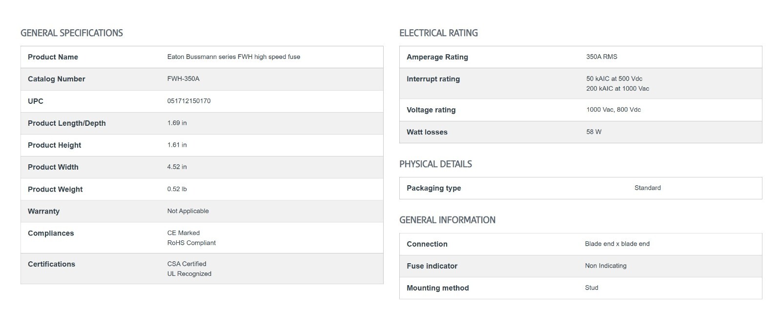 как выглядит One 1 Cooper Bussmann FWH-350A Semiconductor Fuse 500V AC/DC Mexico NEW фото