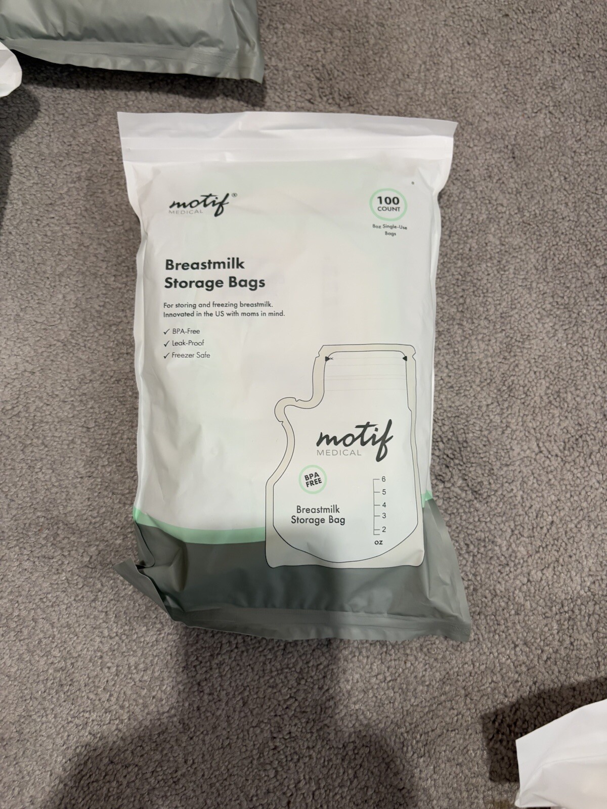 Motif Breastmilk Storage Bags - 600 Bags 6 Packs Of 100 8 Oz 60 Nursing pads