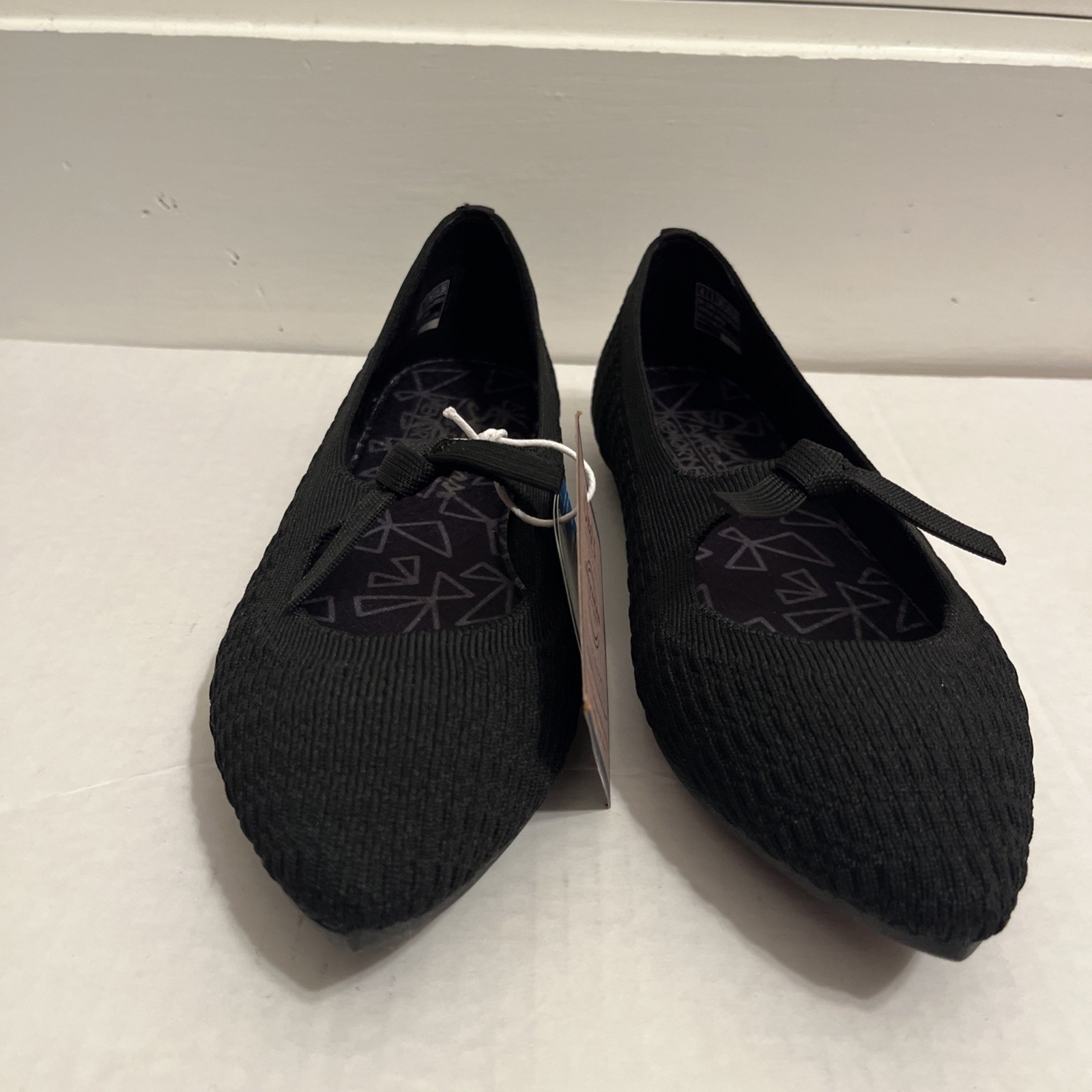 Skechers Cleo Point Washable Recycled Knit Flats Nostalgic Days Black Size 6