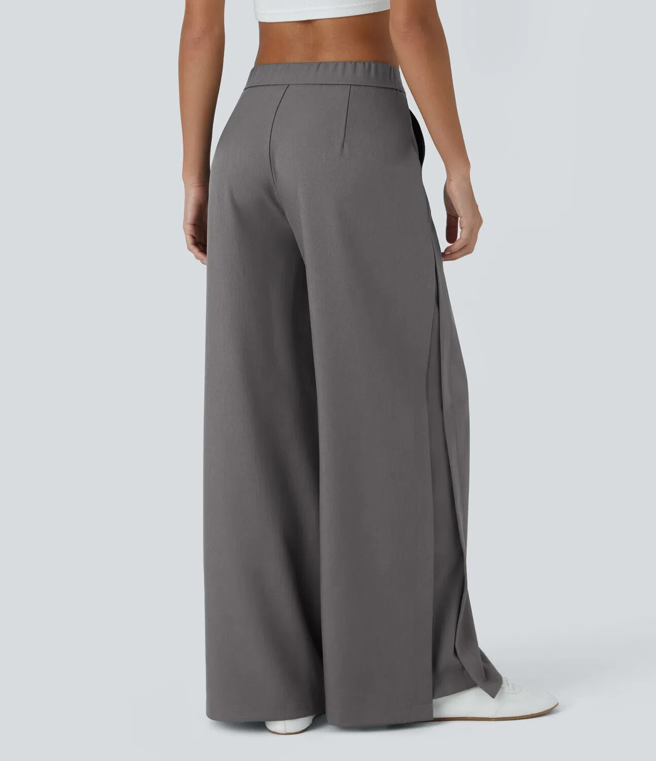 Halara Mid Rise Button Zipper Side Pocket Wide Leg Casual Trousers Size Small