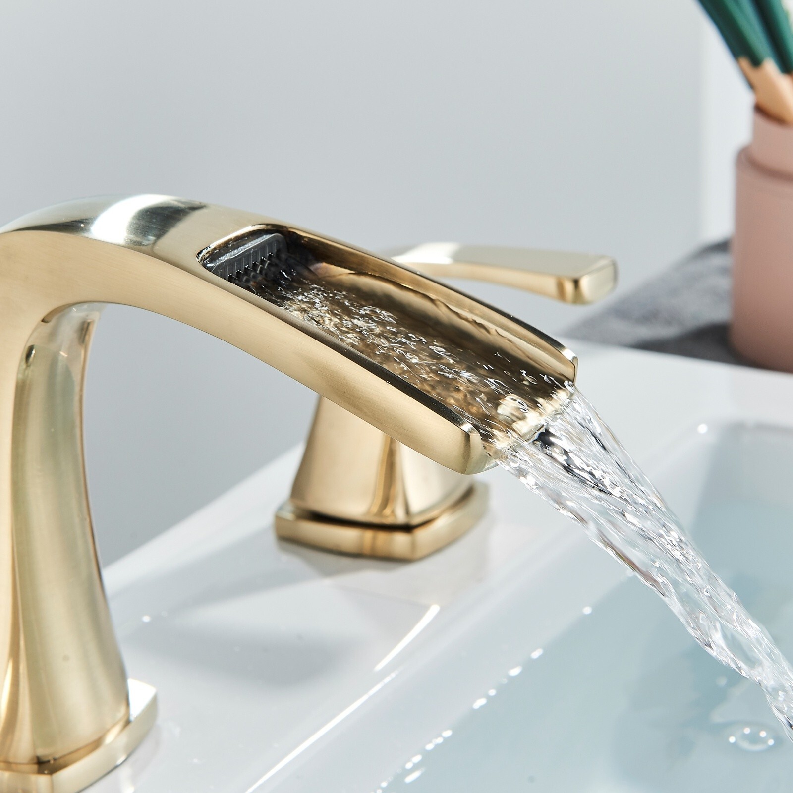 Widespread Bathroom Sink Faucet 2 Handles 3 Holes Brushed Gold Luxury Basin Tap