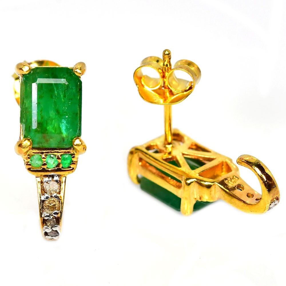 как выглядит 925 STERLING SILVER DROP EARRING NATURAL GREEN EMERALD OCTAGON CUT GEMSTONE фото