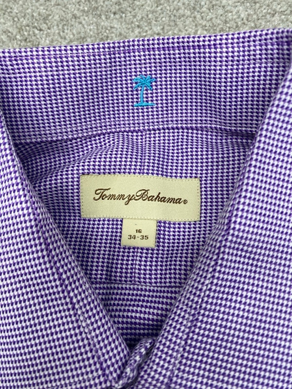 как выглядит Tommy Bahama Shirt Mens 16 Long Sleeve Button Up Purple Check Cotton 5948 фото