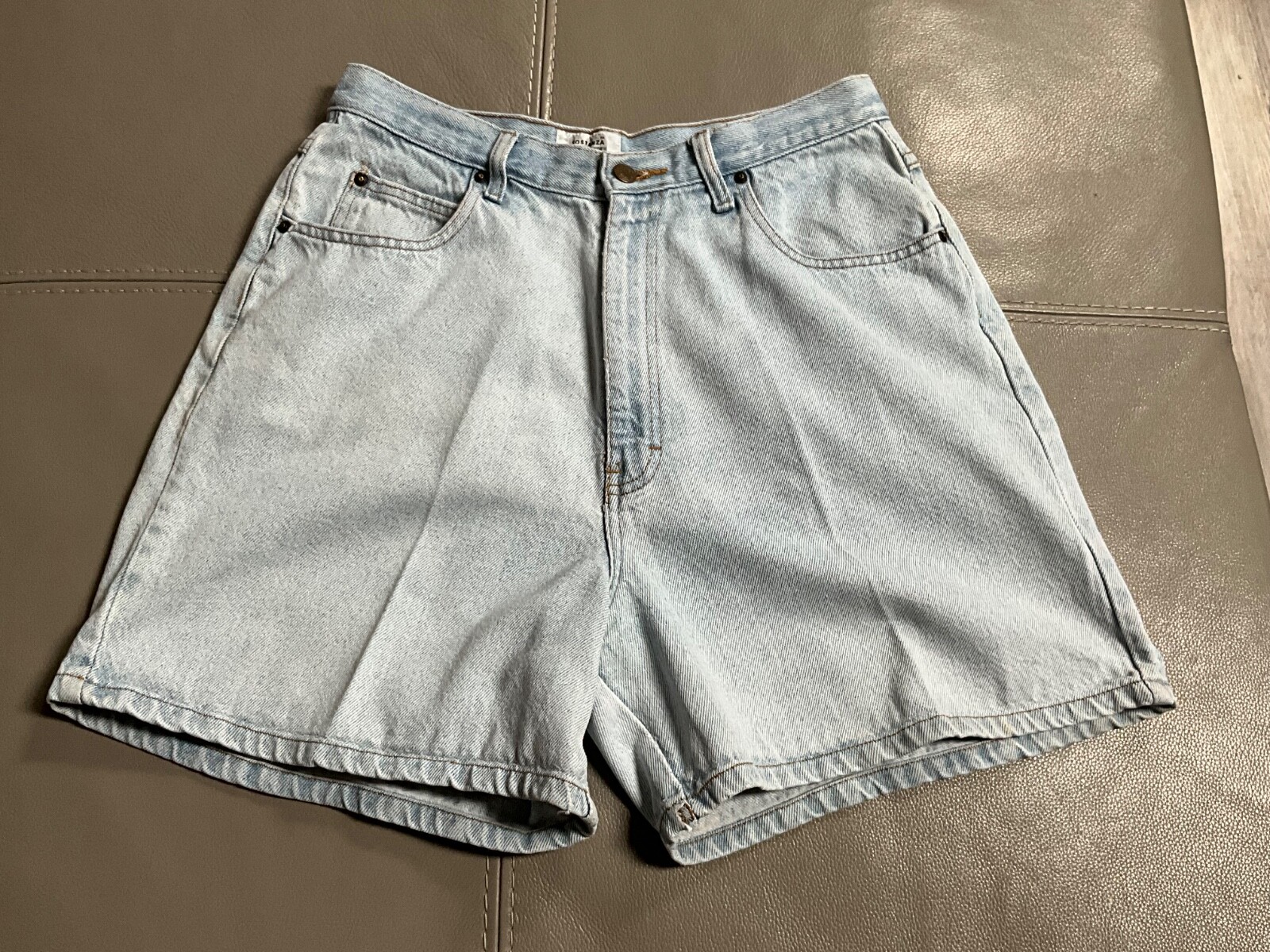 как выглядит VINTAGE SOSTANZA WOMEN S LIGHT WASH HIGH WAISTED COTTON DENIM SHORTS SIZE 13/14 фото