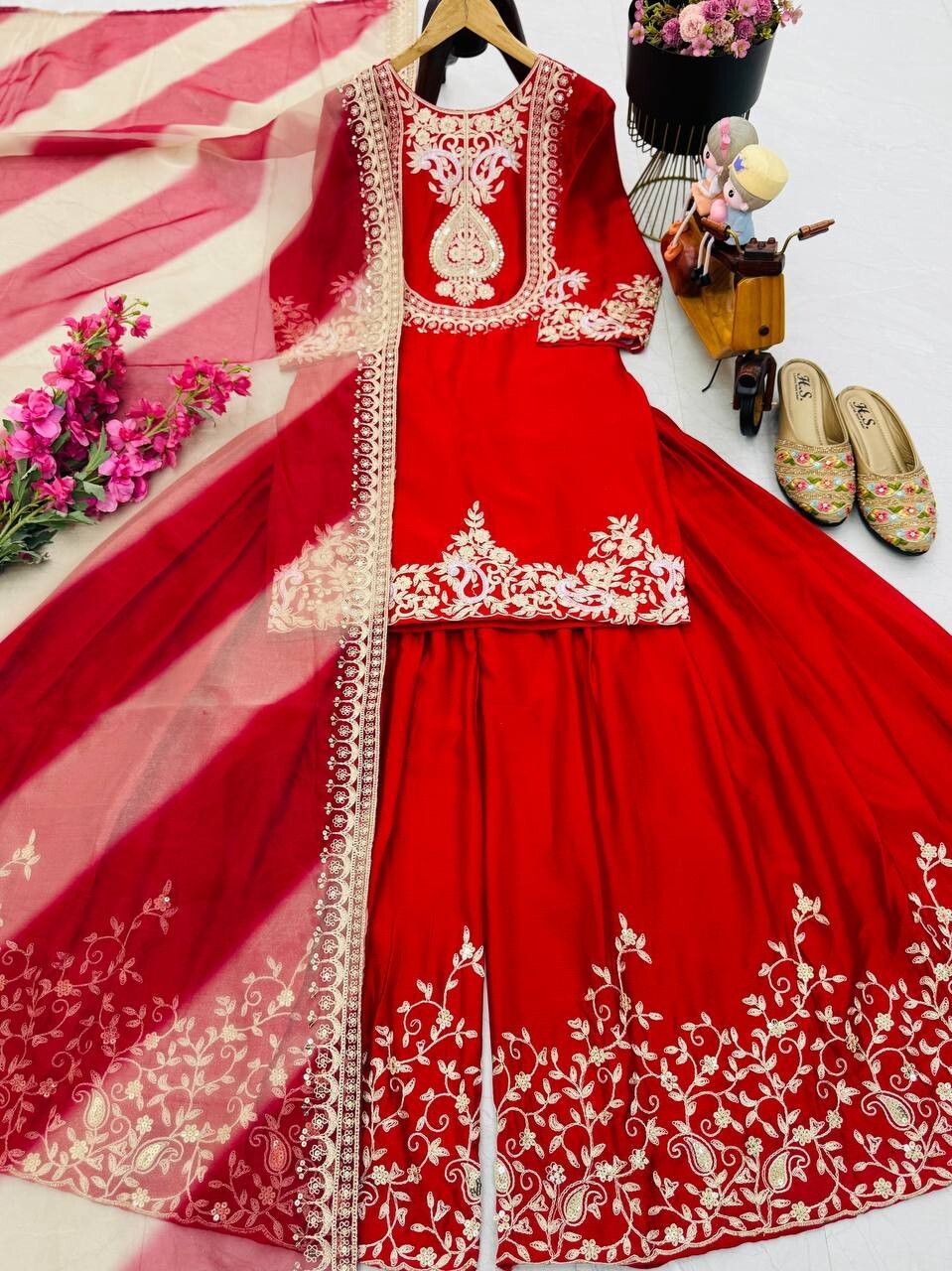 Indian Style Heavy Chinnon Silk Top palazzo With Dupatta For Wedding