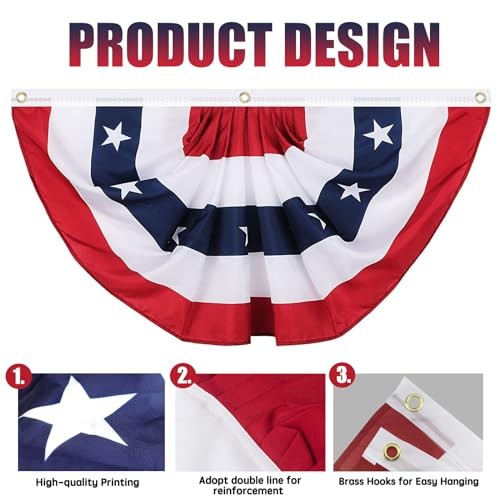 American Pleated Fan Flag, 3 X 6 Ft USA Patriotic Flag Bunting 3x6-4pcs