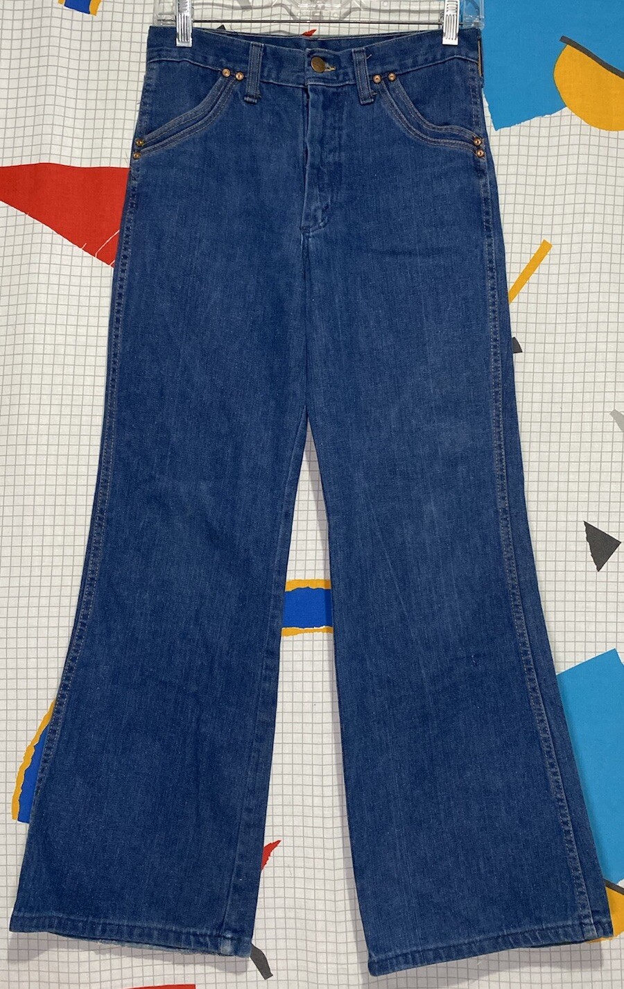 Vintage 70s Wrangler Bell Bottom Jeans 28x28 Talon No Fault Denim Flare Hippie