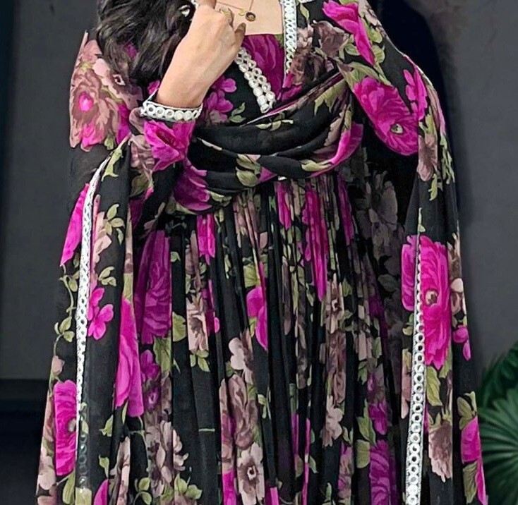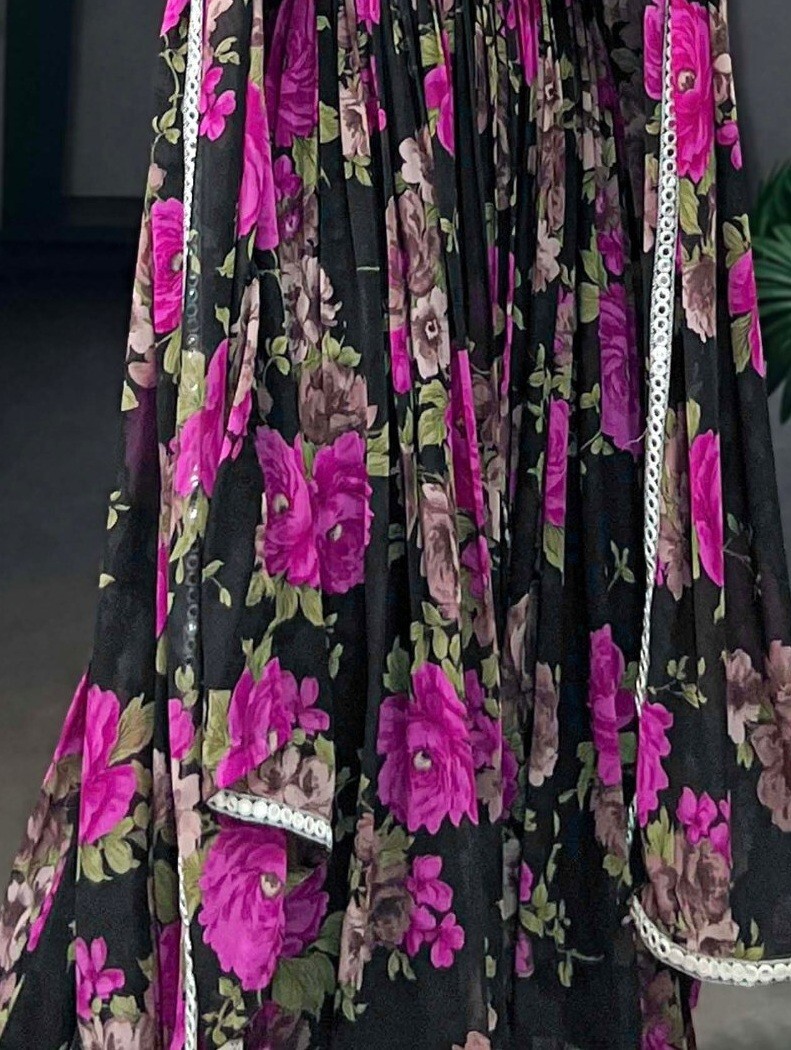 Gown Work: Floral Printed With Paper Mirror Lace Touch Up