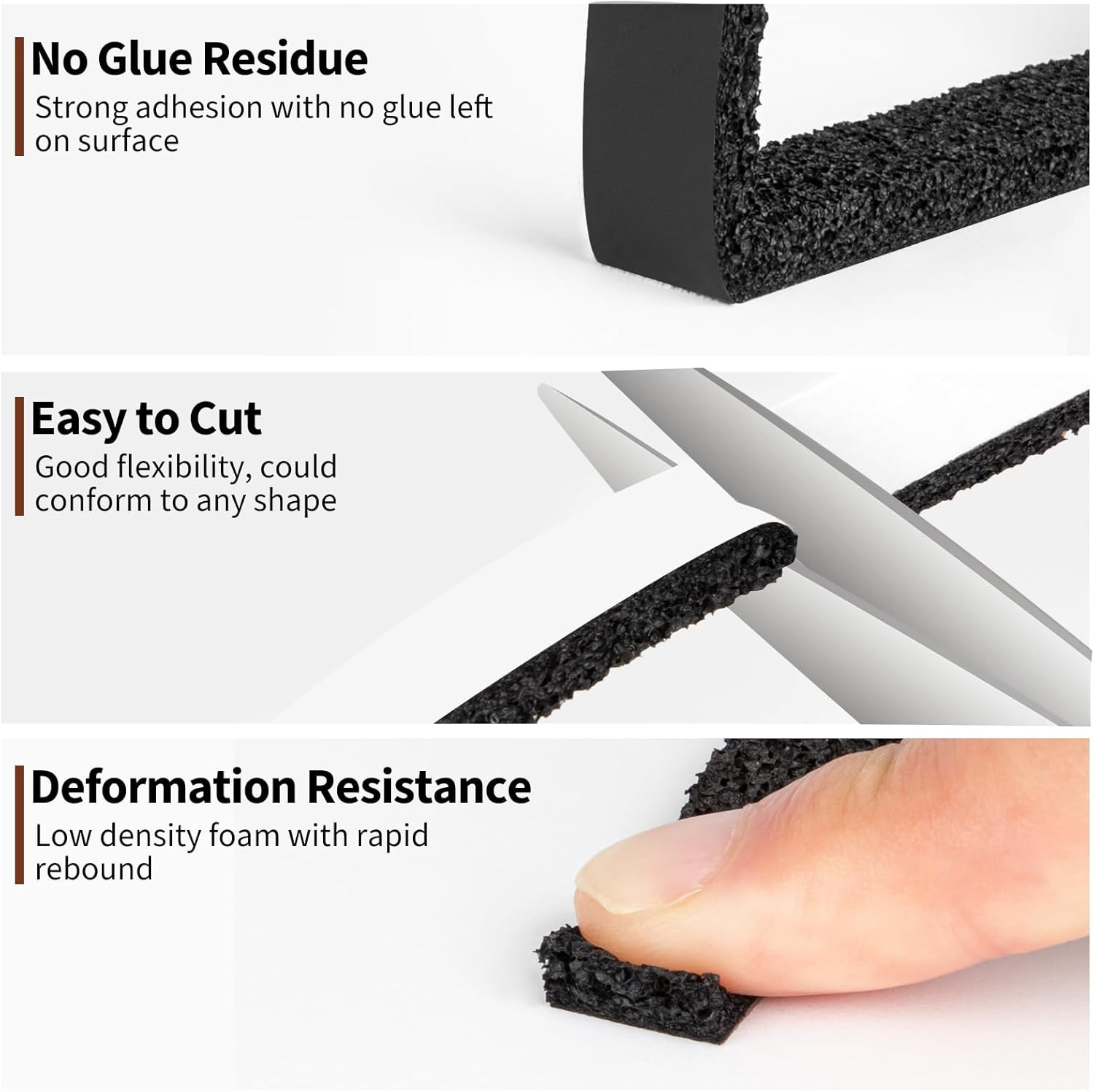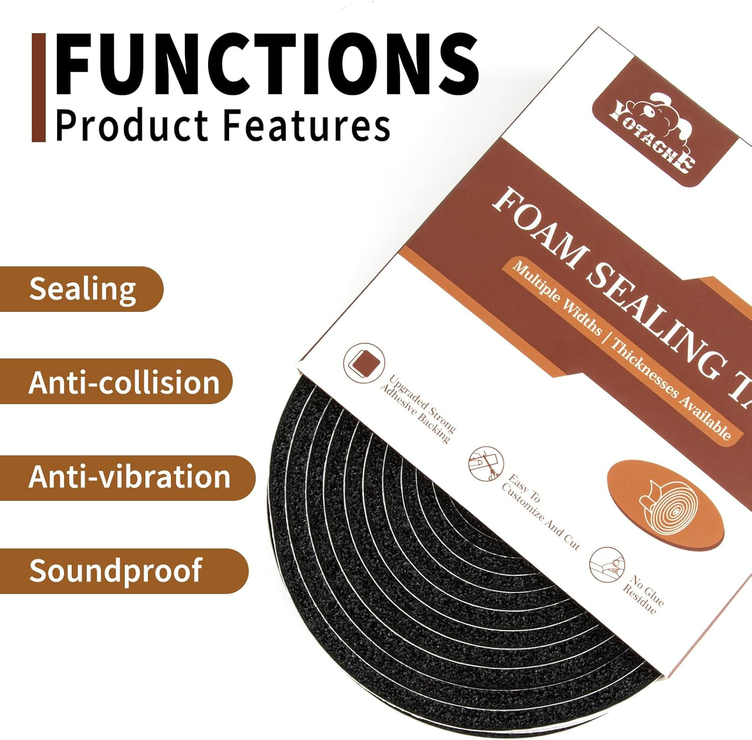 Open Cell Self-Adhesive Foam Seal Tape 1/2 X 1/4 Inch, Weather Stripping for Doo