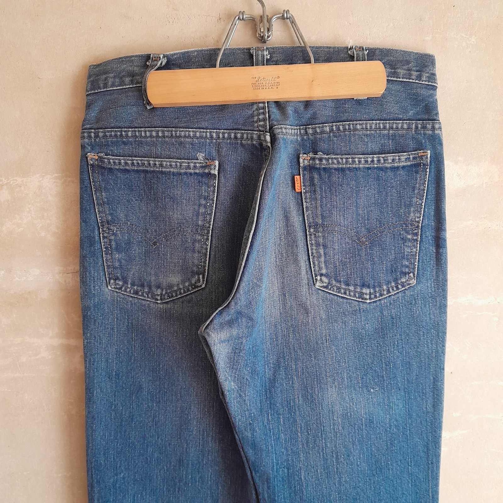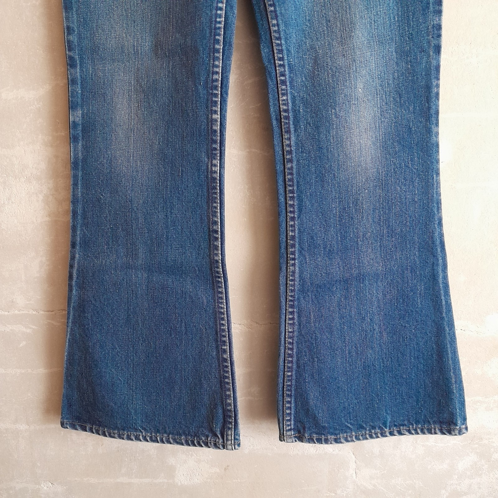 как выглядит 745. vintage blue Levis bell bottom orange tab 70s denim jeans, 31x32 10 фото