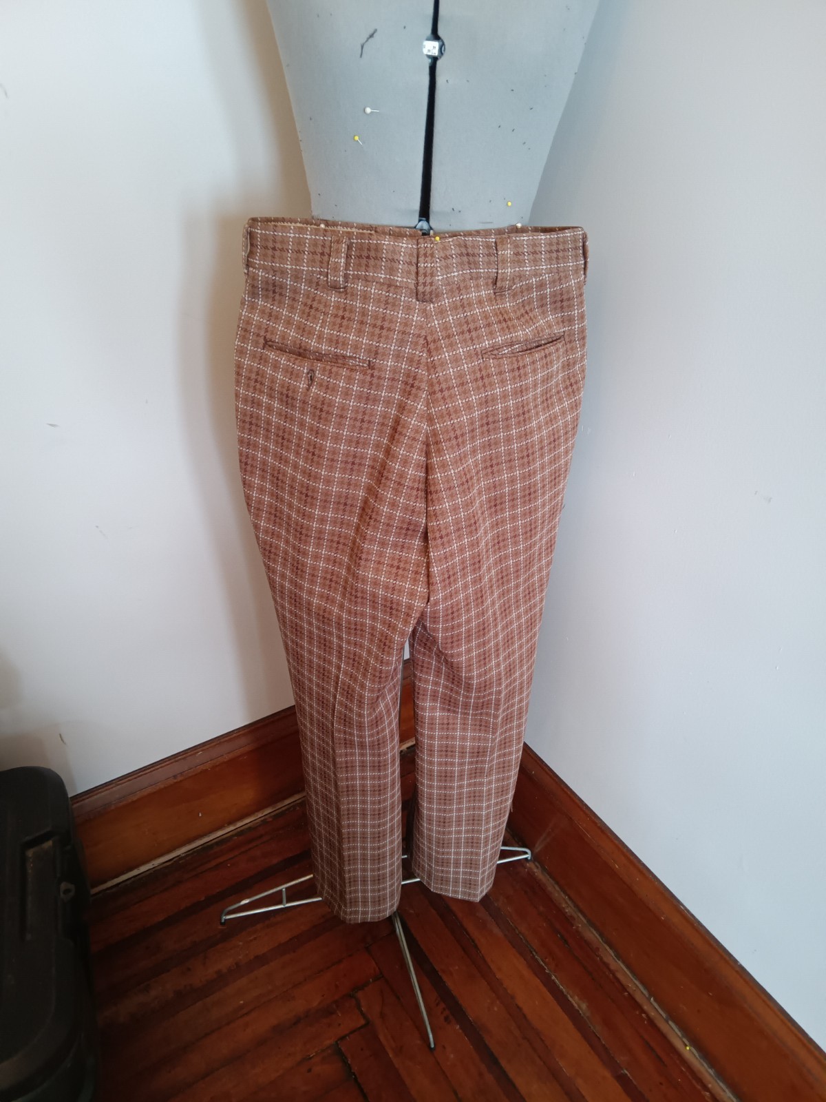 как выглядит Vintage 70s Kings Road Plaid Knit Slacks Brown Stretch Trim Regular Perma Press фото