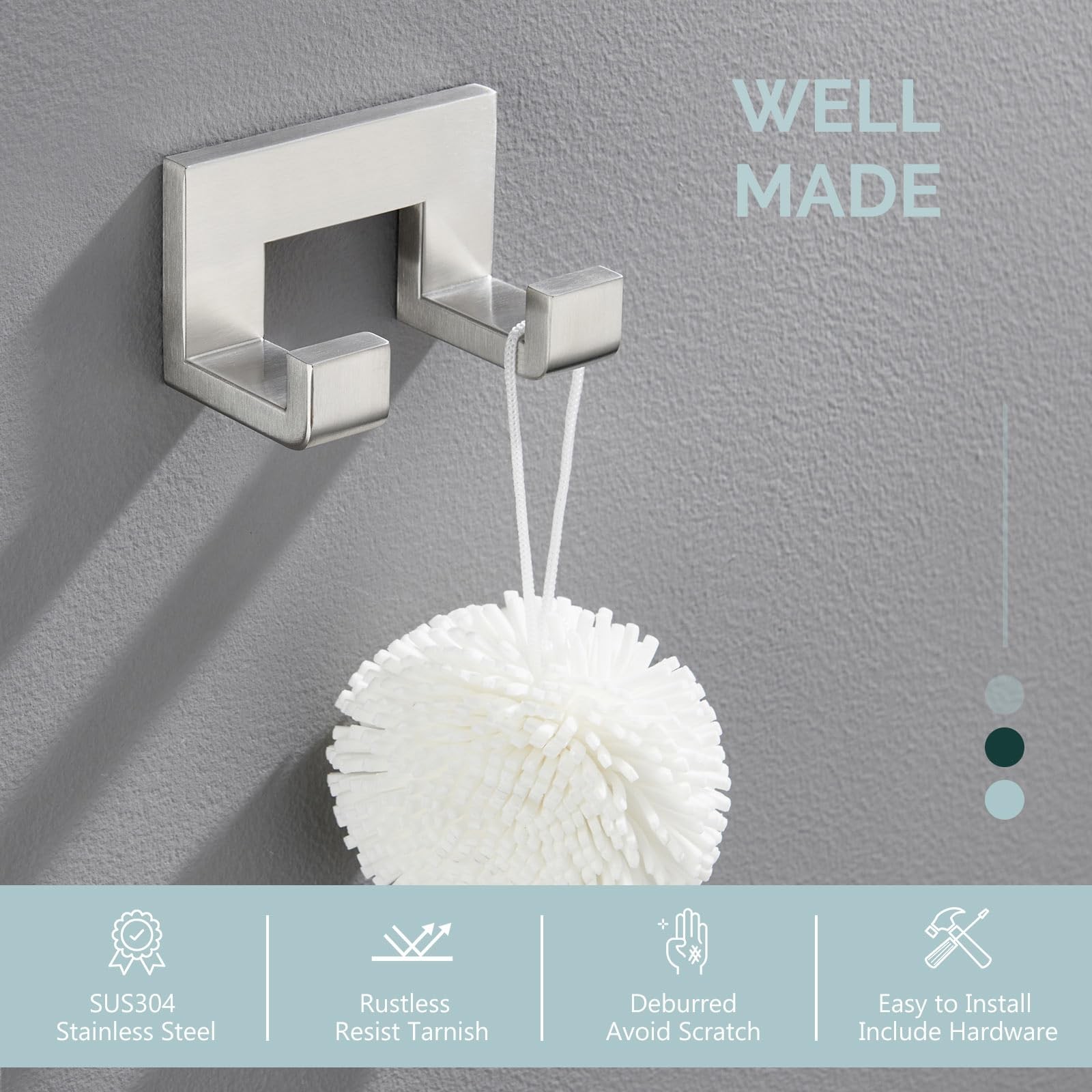 Double Towel Hook Brushed Nickel, 304 Stainless Steel Robe Coat Hook for Bath...