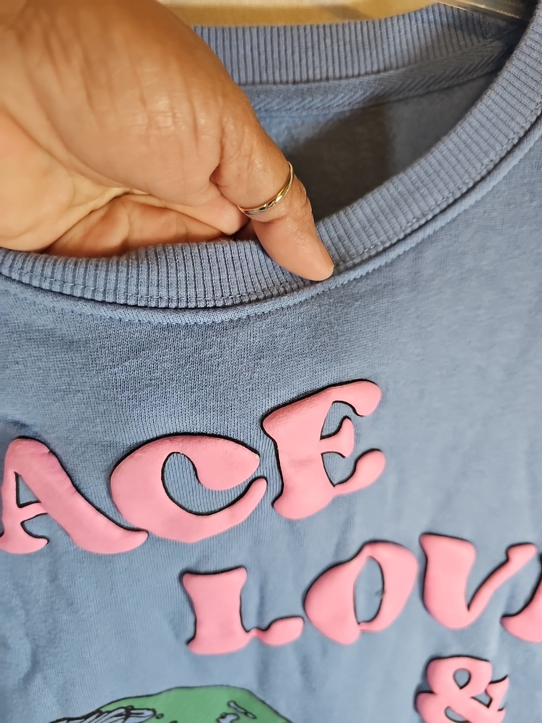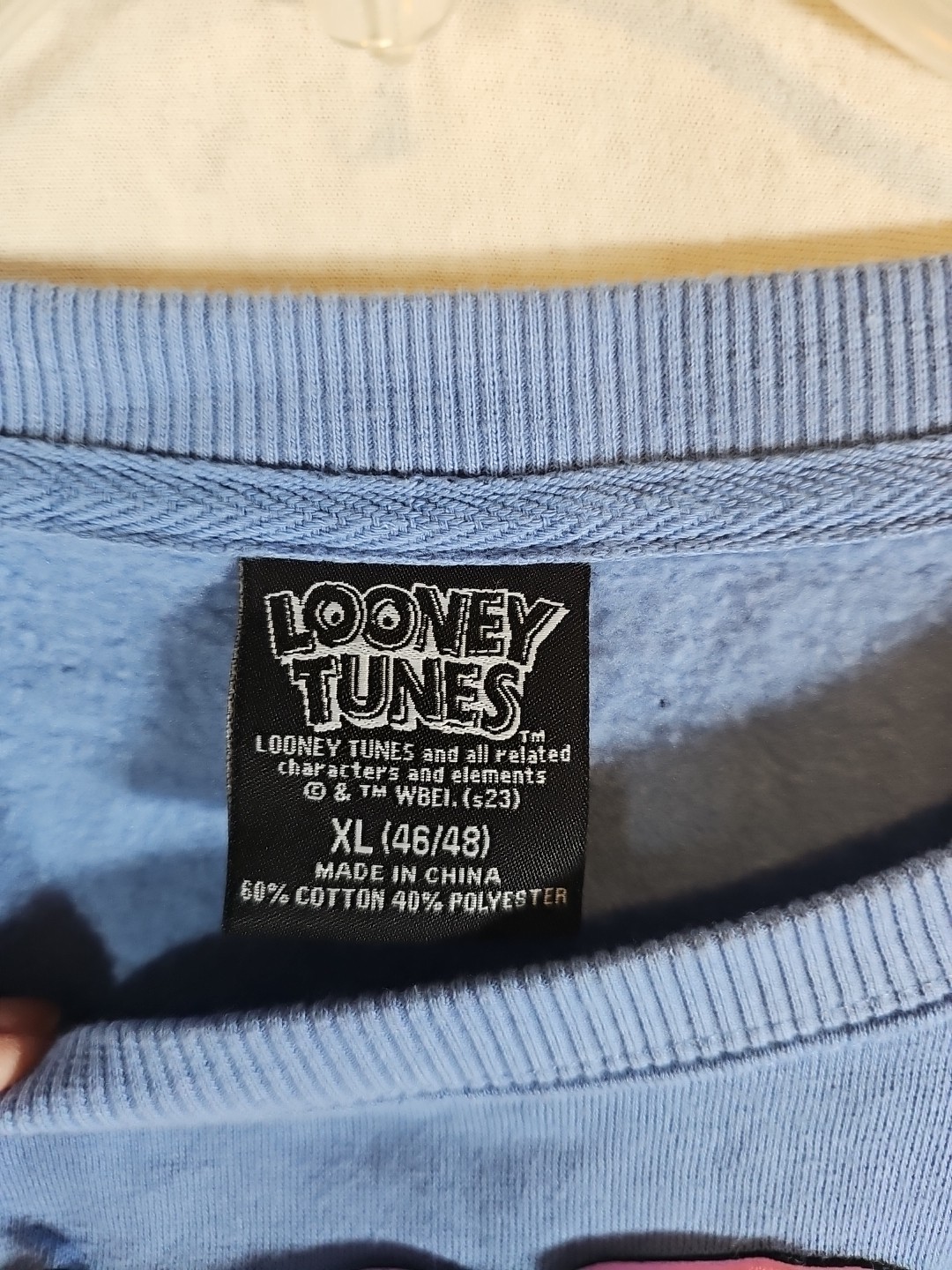 как выглядит LOONEY TUNES BUGS BUNNY PEACE LOVE UNITY PUFF PAINT SWEATSHIRT BLUE XL фото