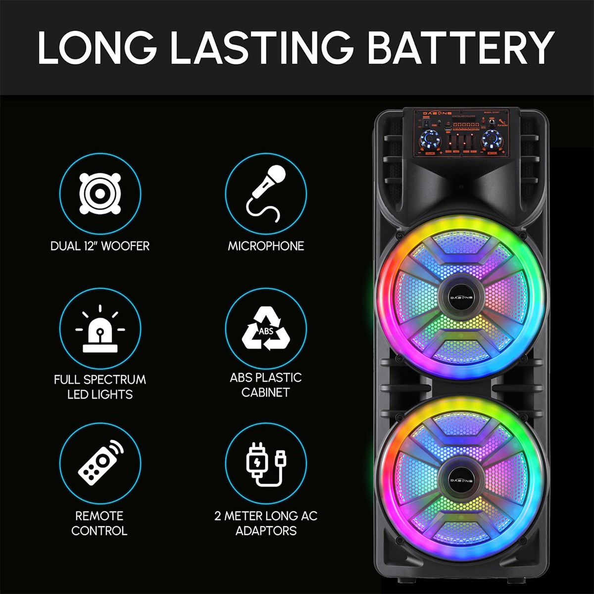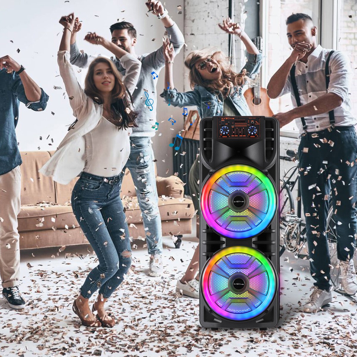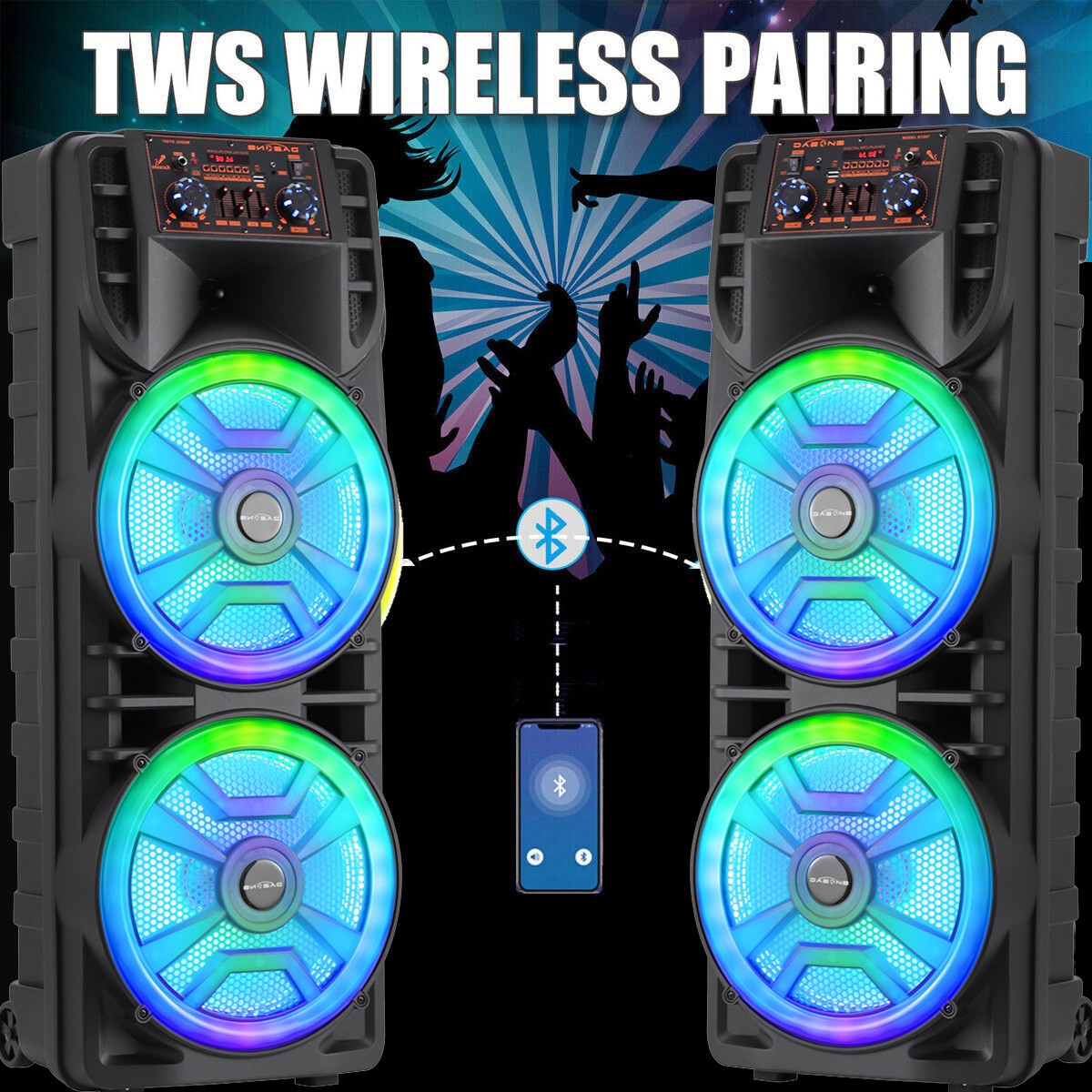 8000W Dual 12in Subwoofer Portable Party Speaker LED Bluetooth Sound System mic