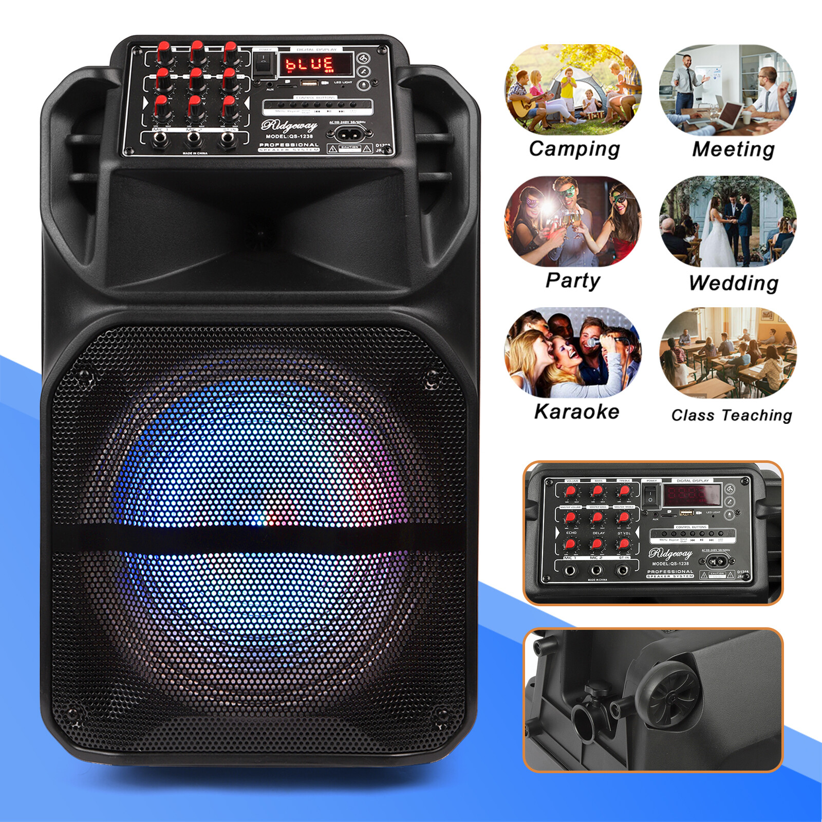 как выглядит 12" Bluetooth Speaker Heavy Bass Sound FM AUX TF System W/ Mic Remote Portable фото