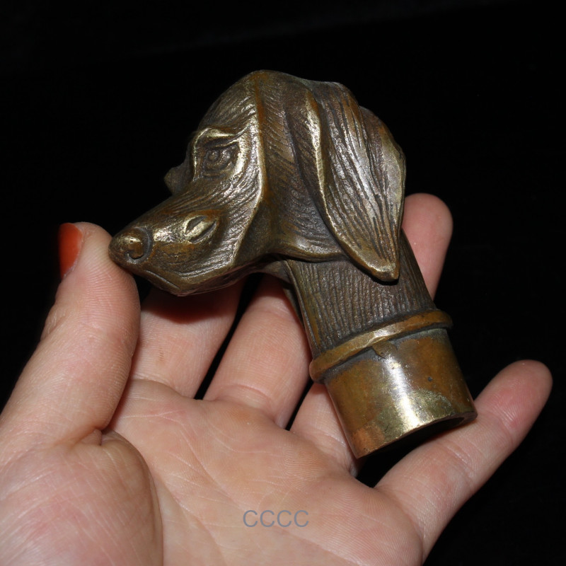 как выглядит Rare Retro Bronze Zodiac Dog Head Cane Walking Stick Head Handle Accessories фото
