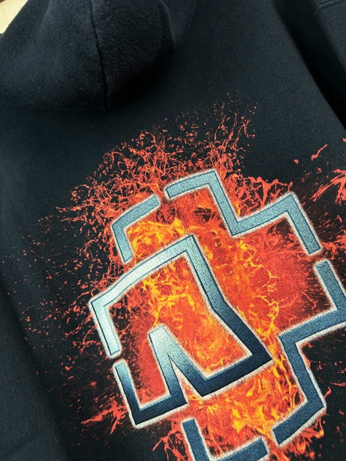 Vintage 2000's Rammstein Big Logo Hoodie Fire Rare Jacket Over Print Size XL