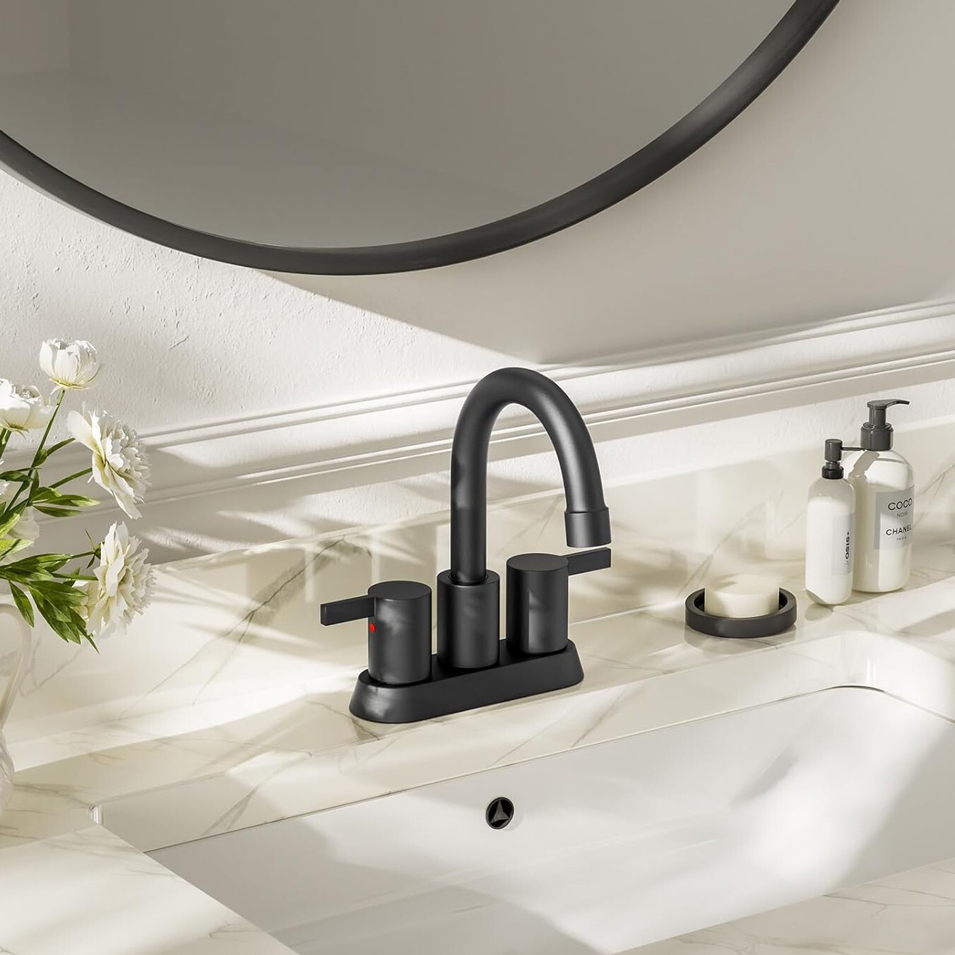 4 Centerset Bathroom Sink Faucet 2 Handle Black Basin Vanity Faucet with Drain