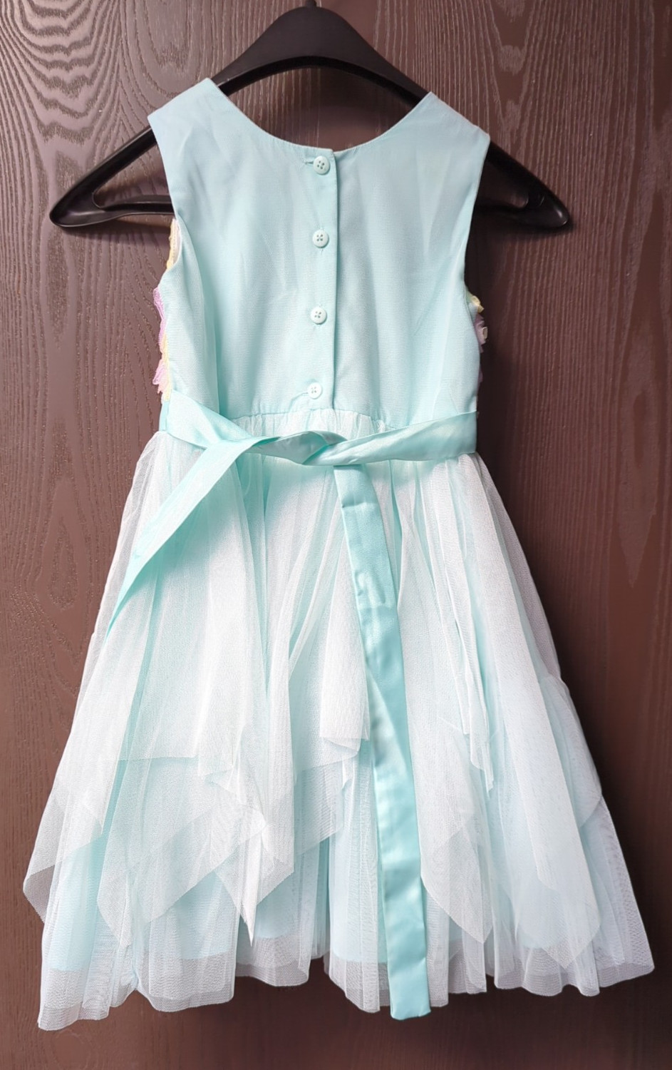 как выглядит Jona Michelle Girls Size 6 Blue Fit Flare Special Occasion Floral Tiered Dress фото
