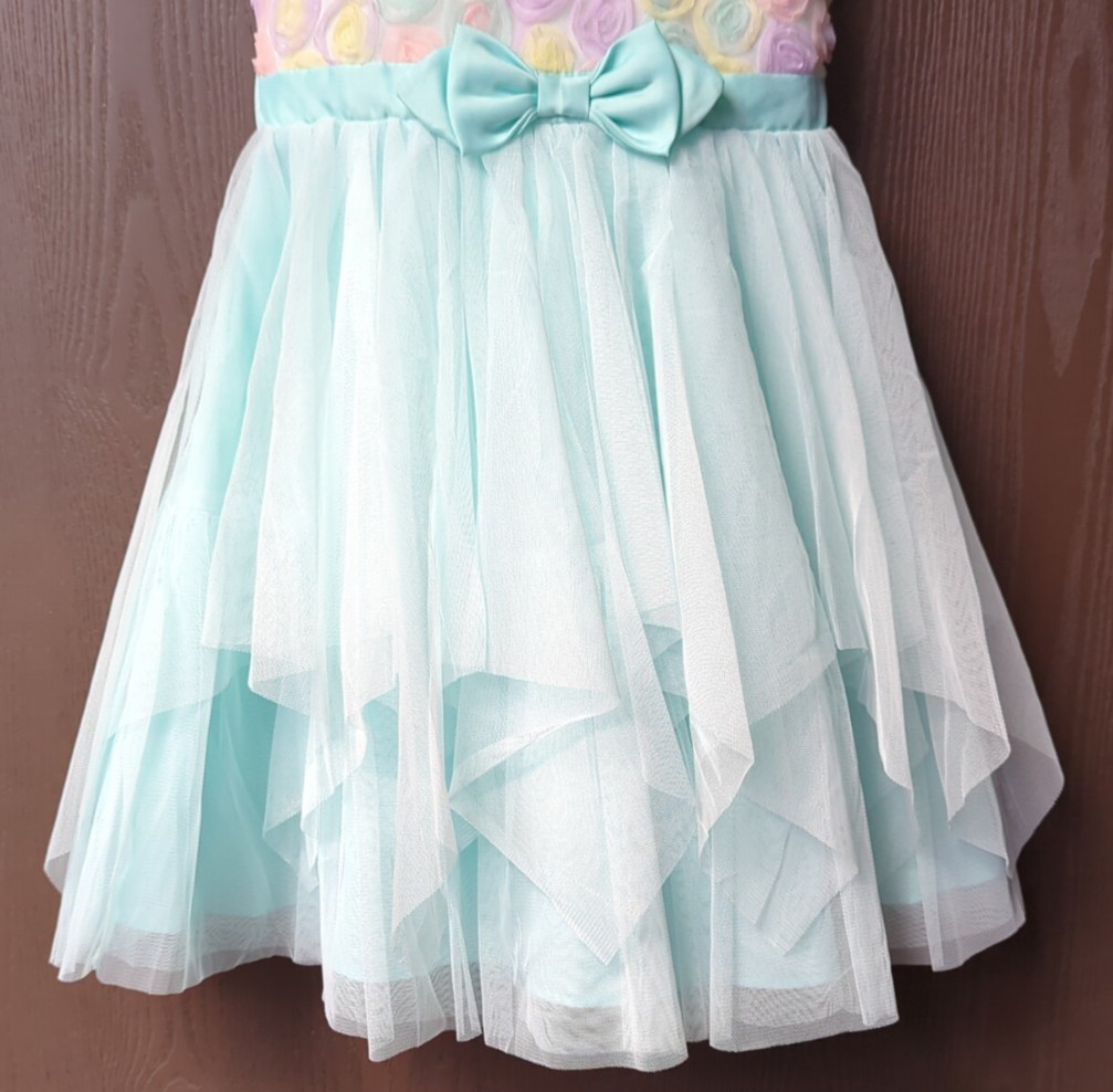 Jona Michelle Girls Size 6 Blue Fit Flare Special Occasion Floral Tiered Dress