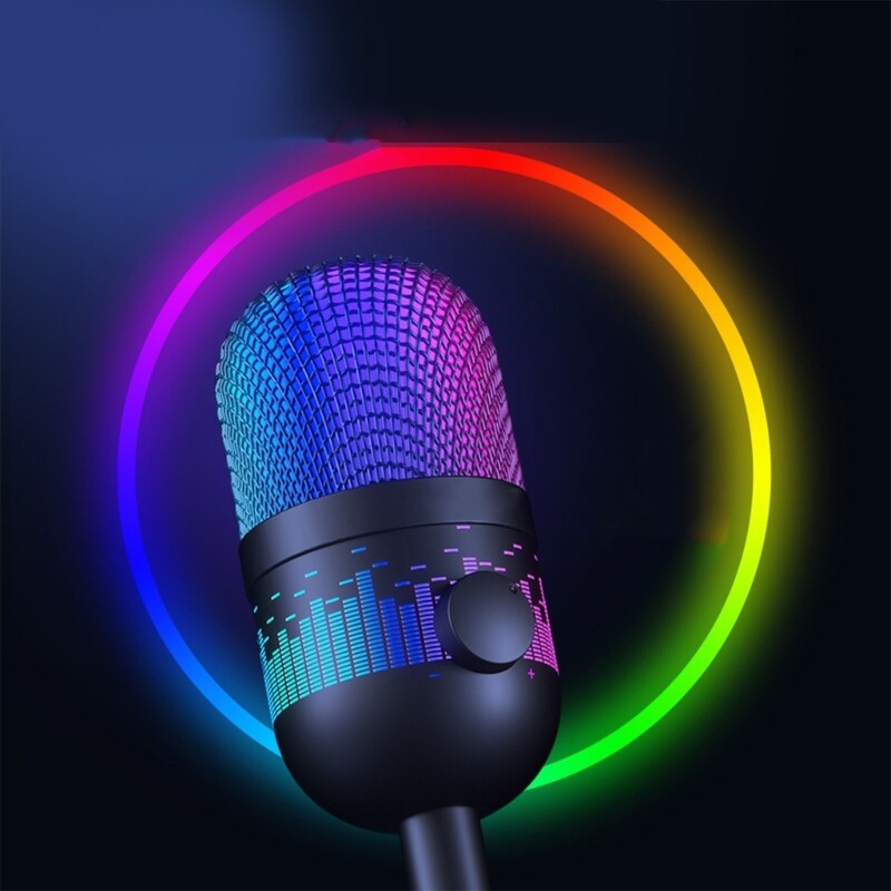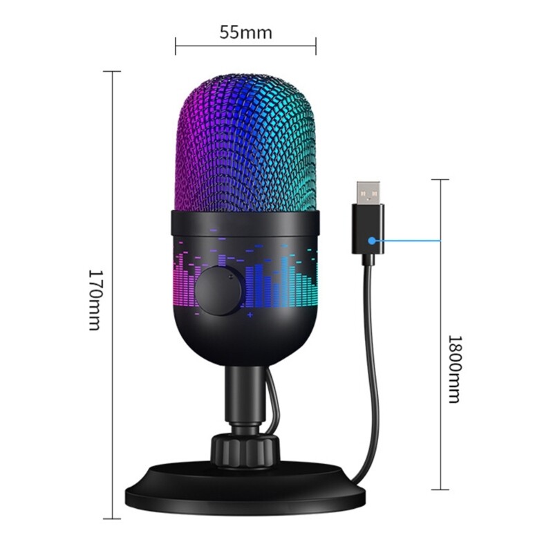 USB LED Microphone for Enhances Sound in Gaming and Broadcasting 70.87in Cord