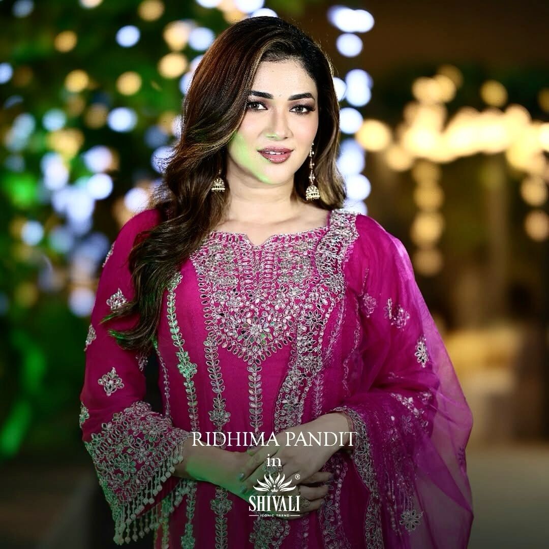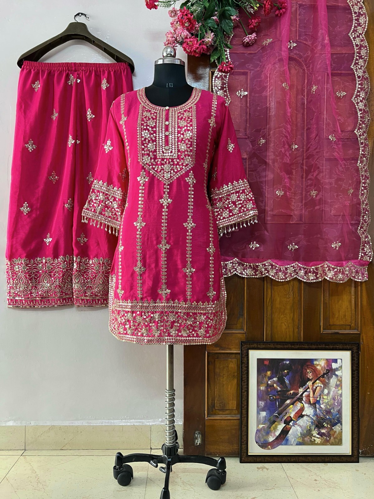 PLAZZO : CHINON SILK WITH SEQUINS & ZARI EMBROIDERY: WORK (FULLY STITCHED)