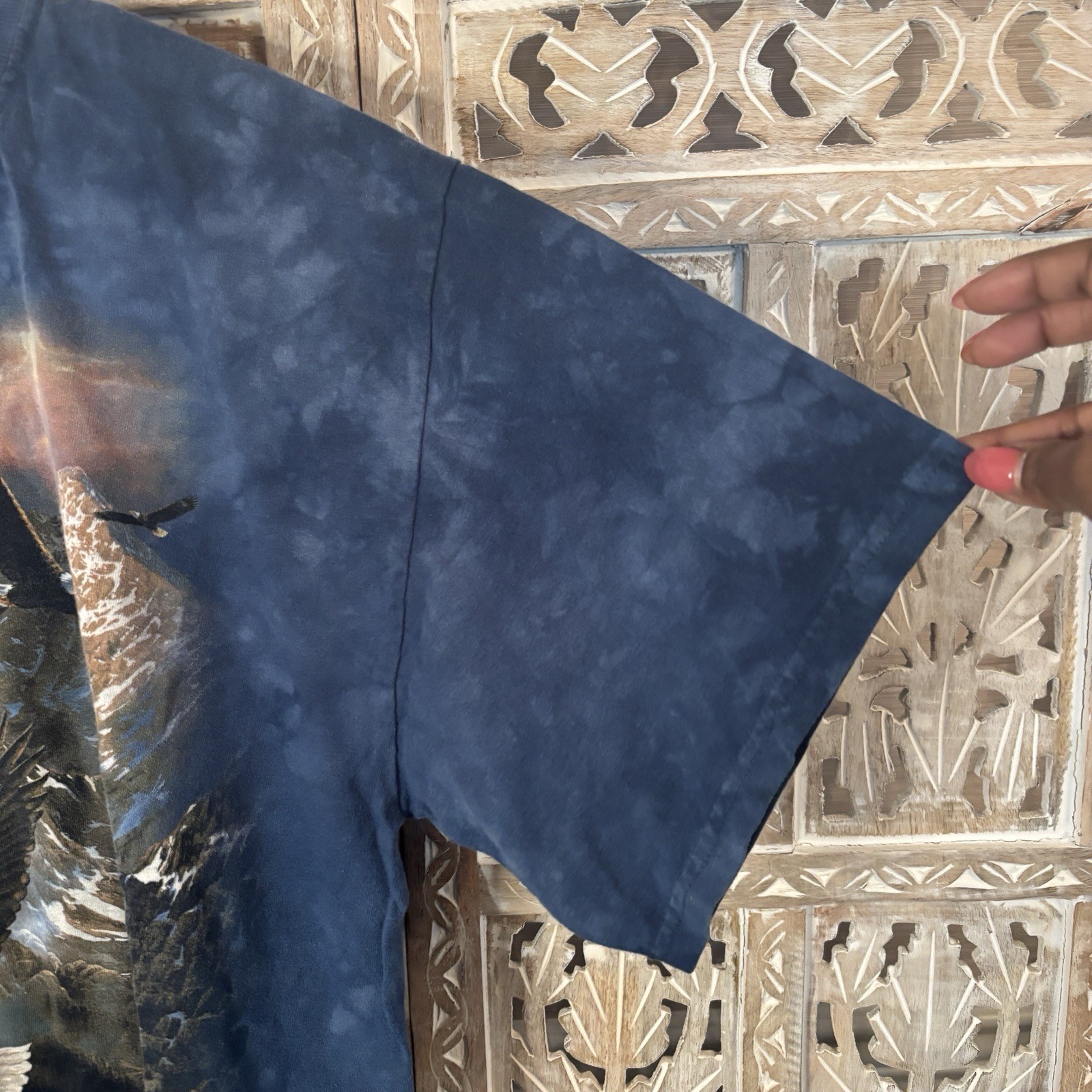 как выглядит The Mountain USA Bald Eagle American Flag Blue Tie Dye T-Shirt Size Men