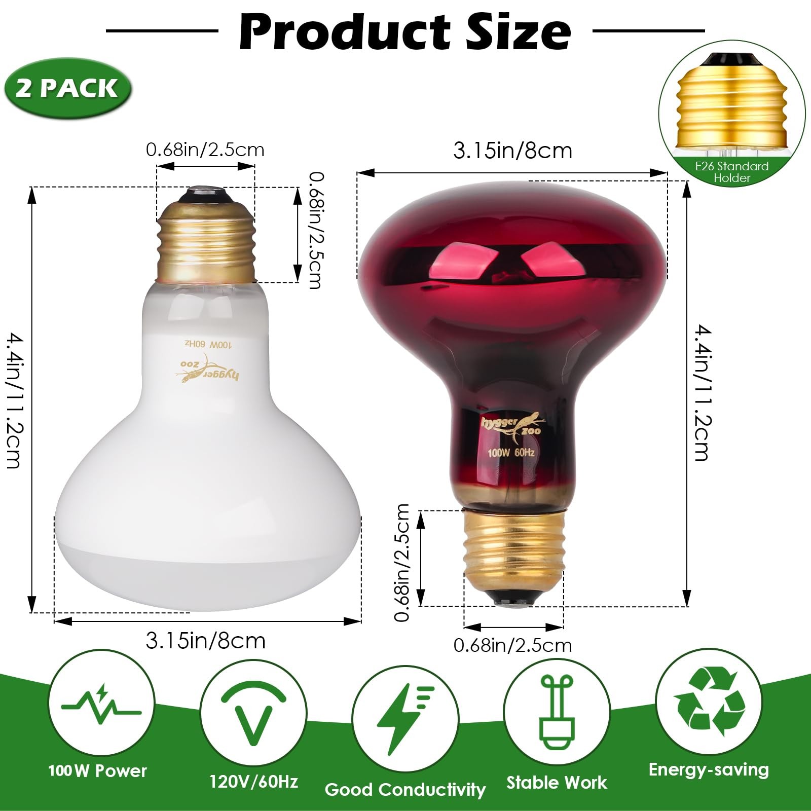 Included Components: 2Pcs Daylight Basking Bulb & Day And Night Infrared Heat Lamp