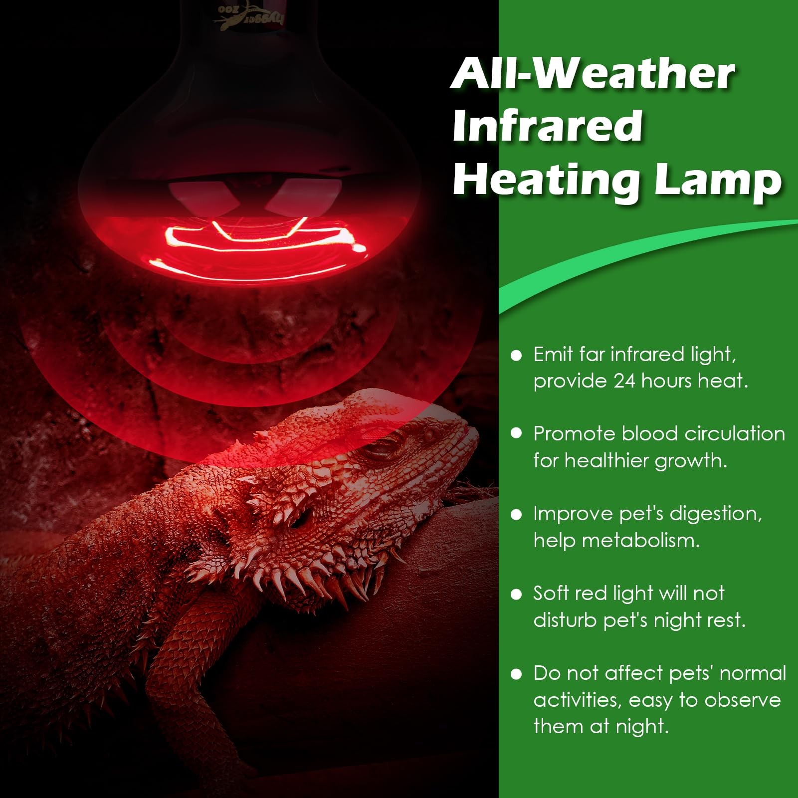 Reptile Heat Lamp Red Light Bulbs for Reptiles, 2PCS 75W Day and Night Infrar...