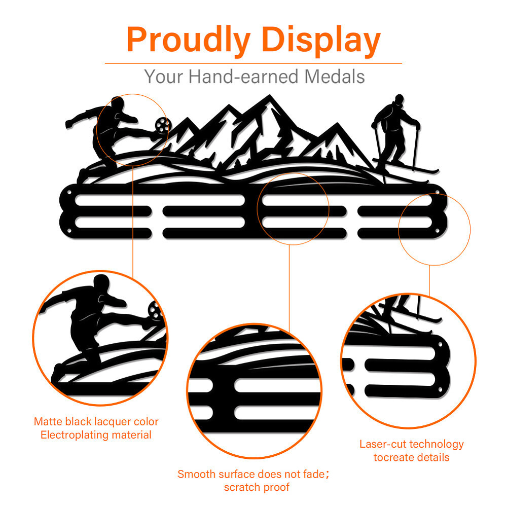 1set Football Skiing Theme Iron Medal Hanger Holder Display Wall Rack