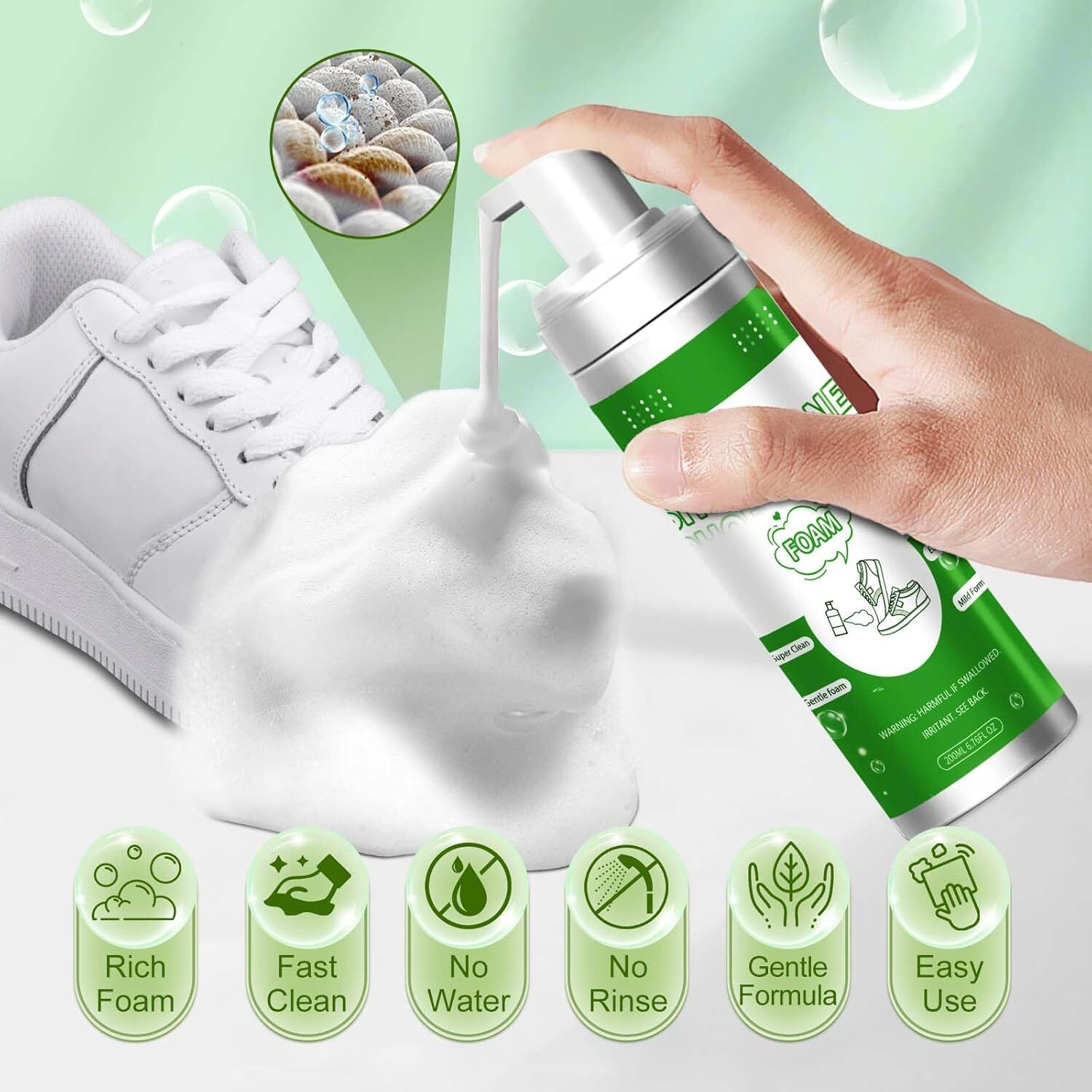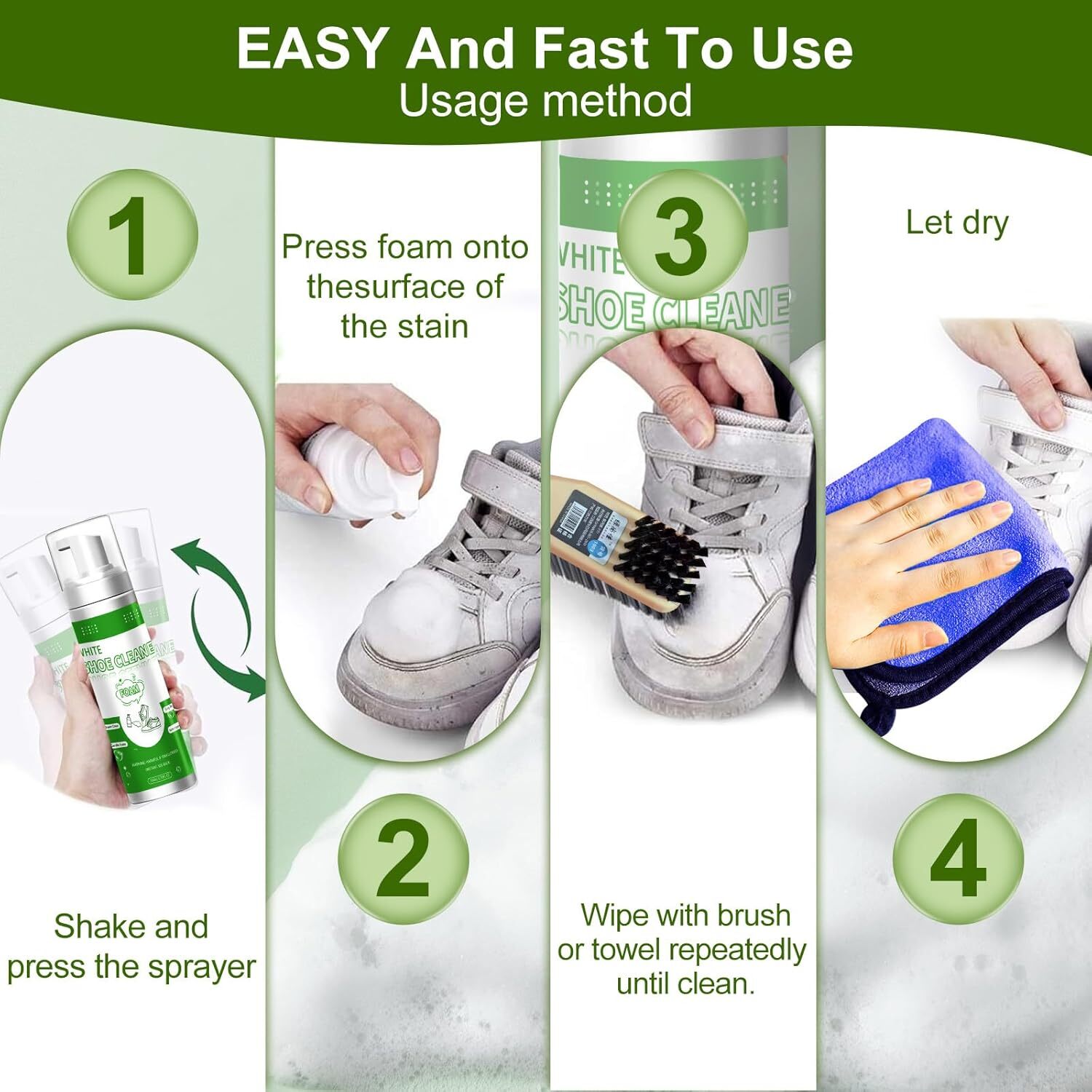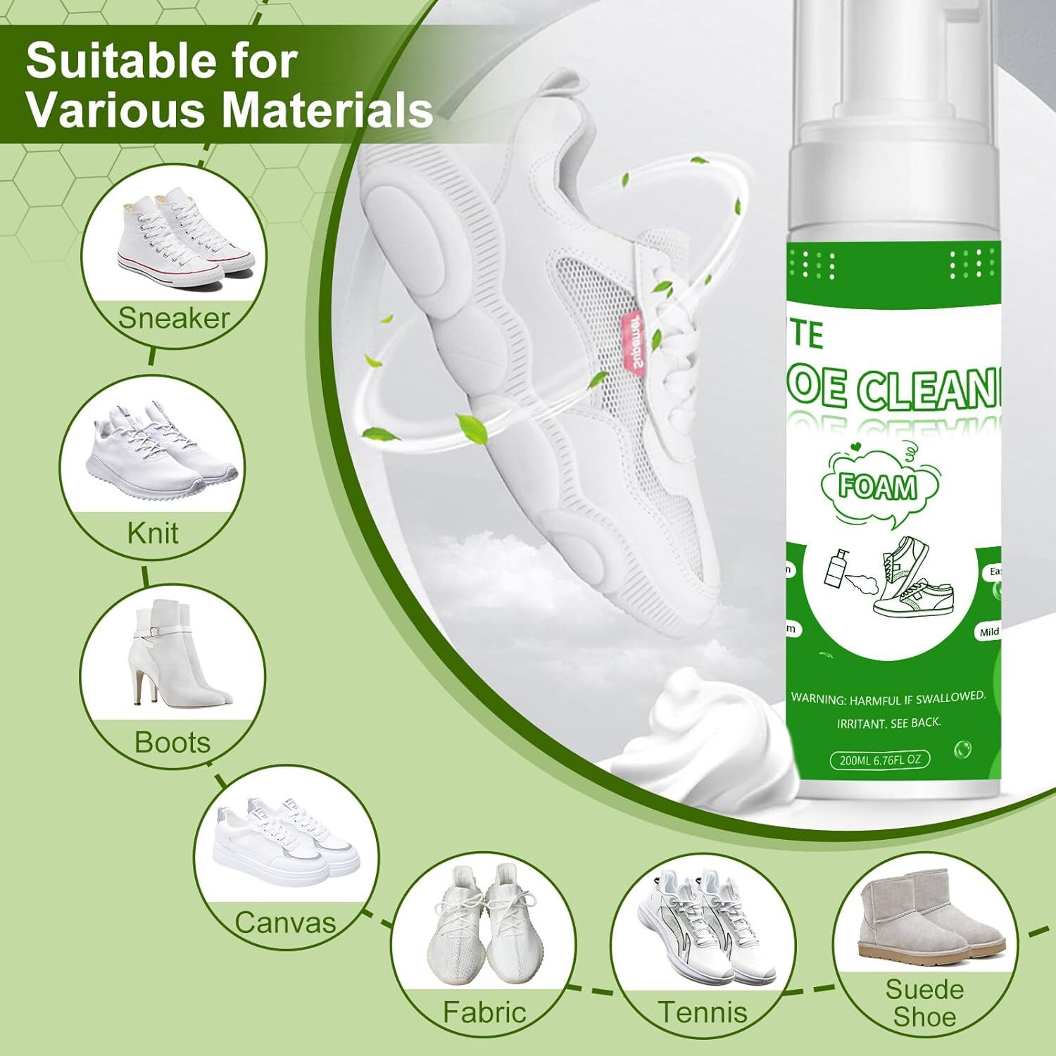 White Shoe Cleaner Kit 200ml Foam, Brushes Towel for All Materials