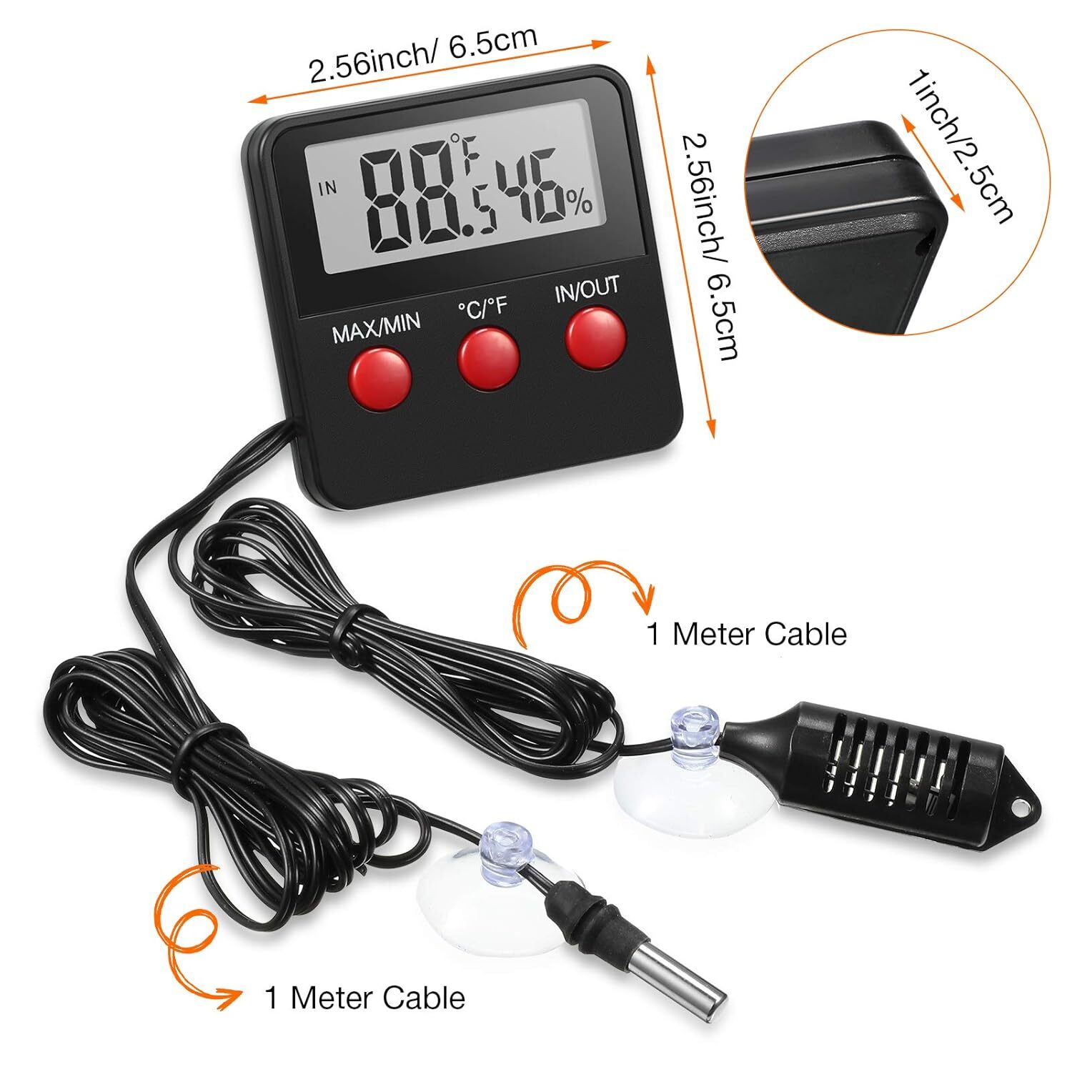 included components (item): Digital reptile thermometer and humidity gauges