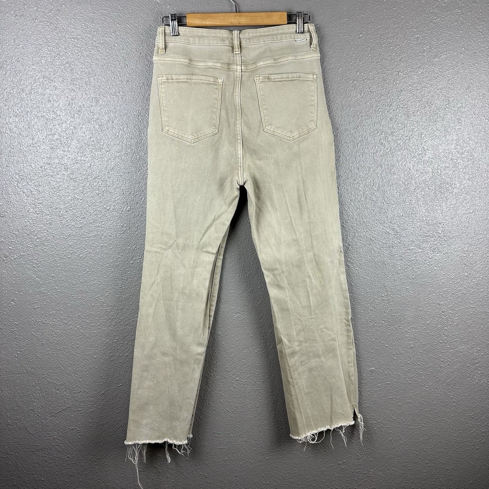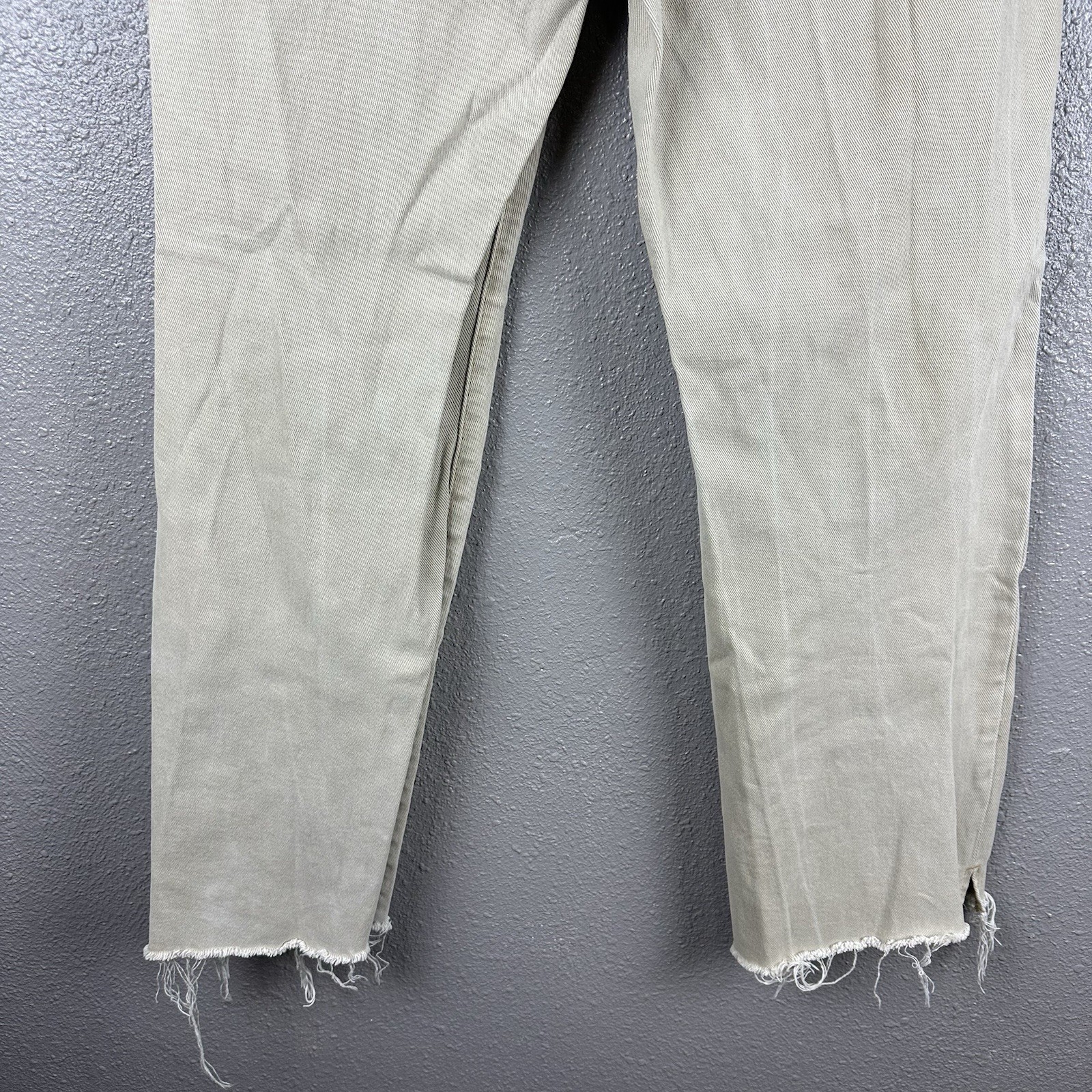 RISEN High Rise Straight Leg Denim Jeans Raw Hem Womens 11/30 Khaki Tan