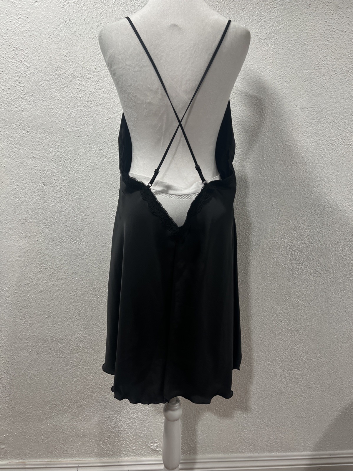 womens Slip Black Dress Open Back Adjustable Crossed Strap Lace Read