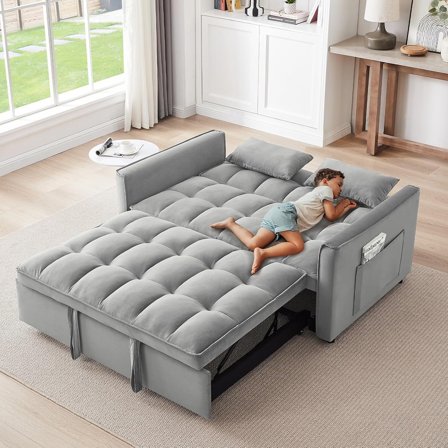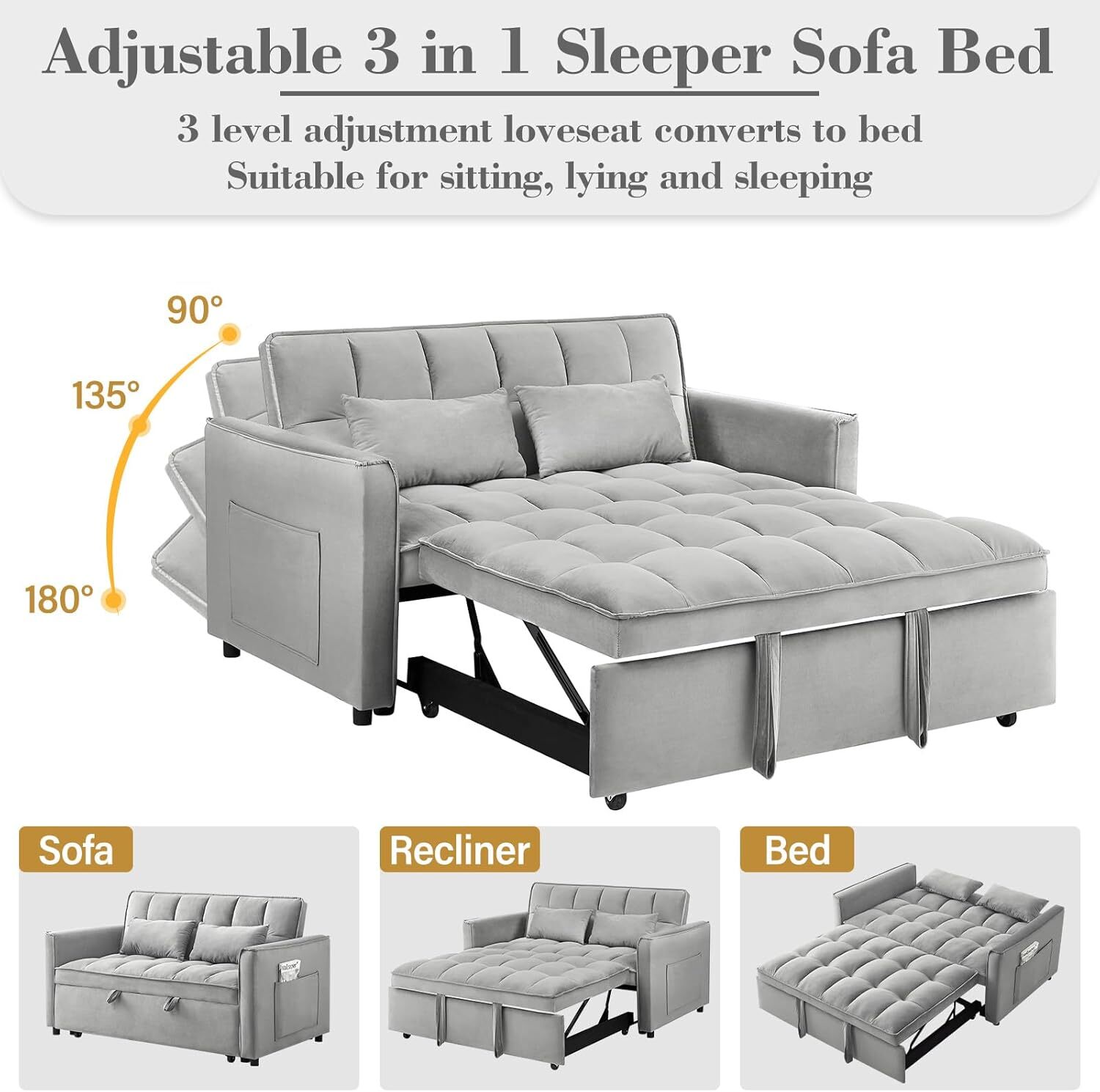 Sofa Bed Couch Sleeper Convertible Pull-Out Bed Couch With Side Pockets