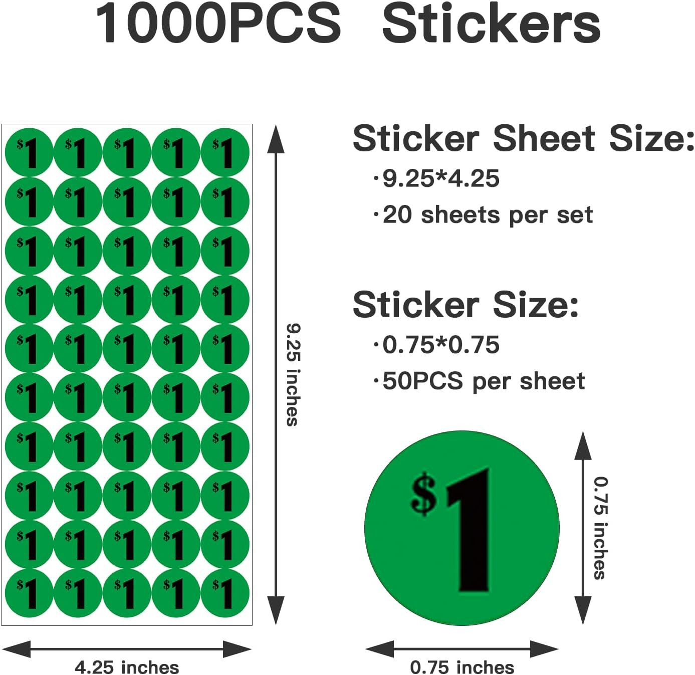 1000 Pcs 1 Color-Coded Price Stickers for Garage Sale and Flea Market, 3/4 Dia