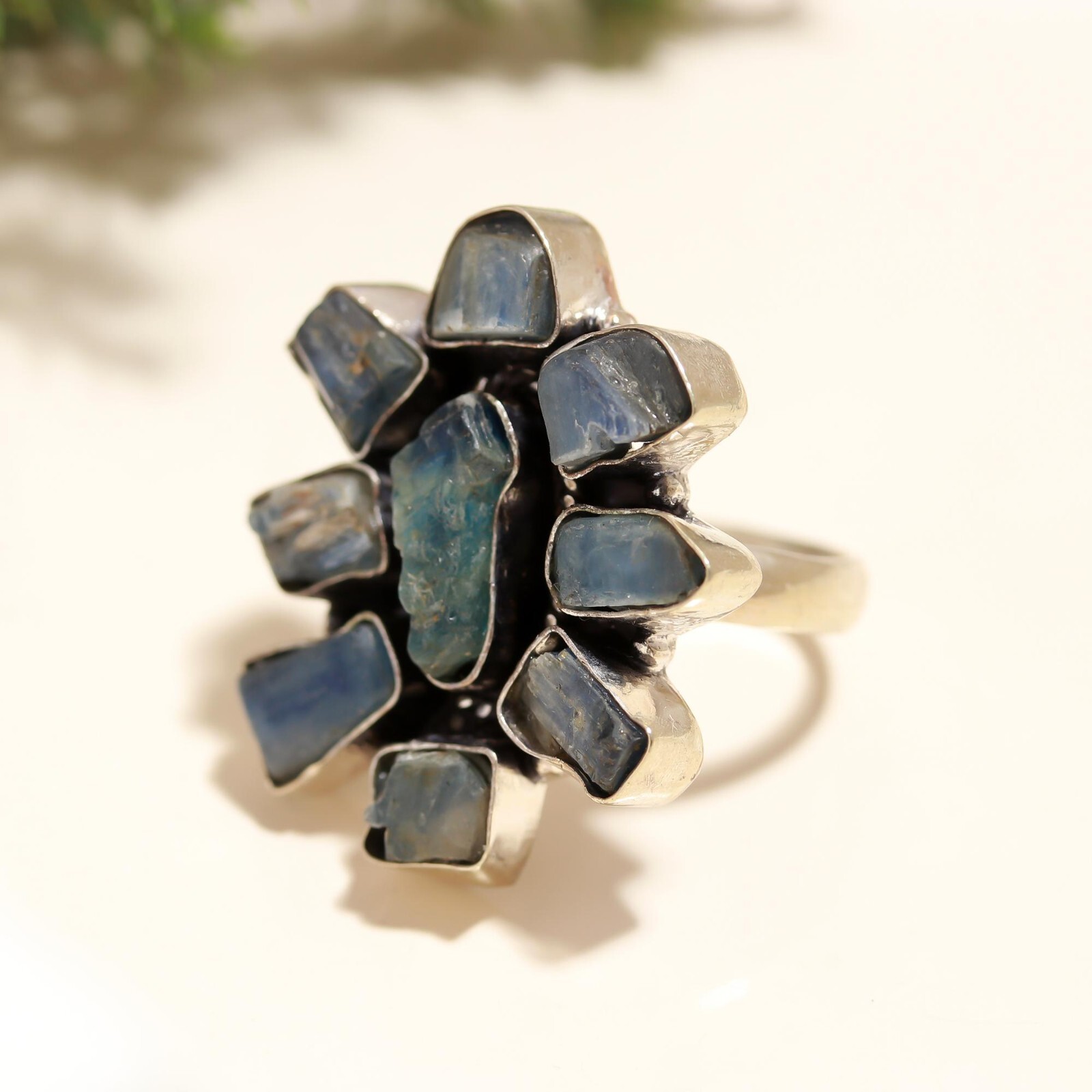 как выглядит Natural Kyanite Raw Gemstone Ring 925 Sterling Silver Handcrafted Jewelry фото