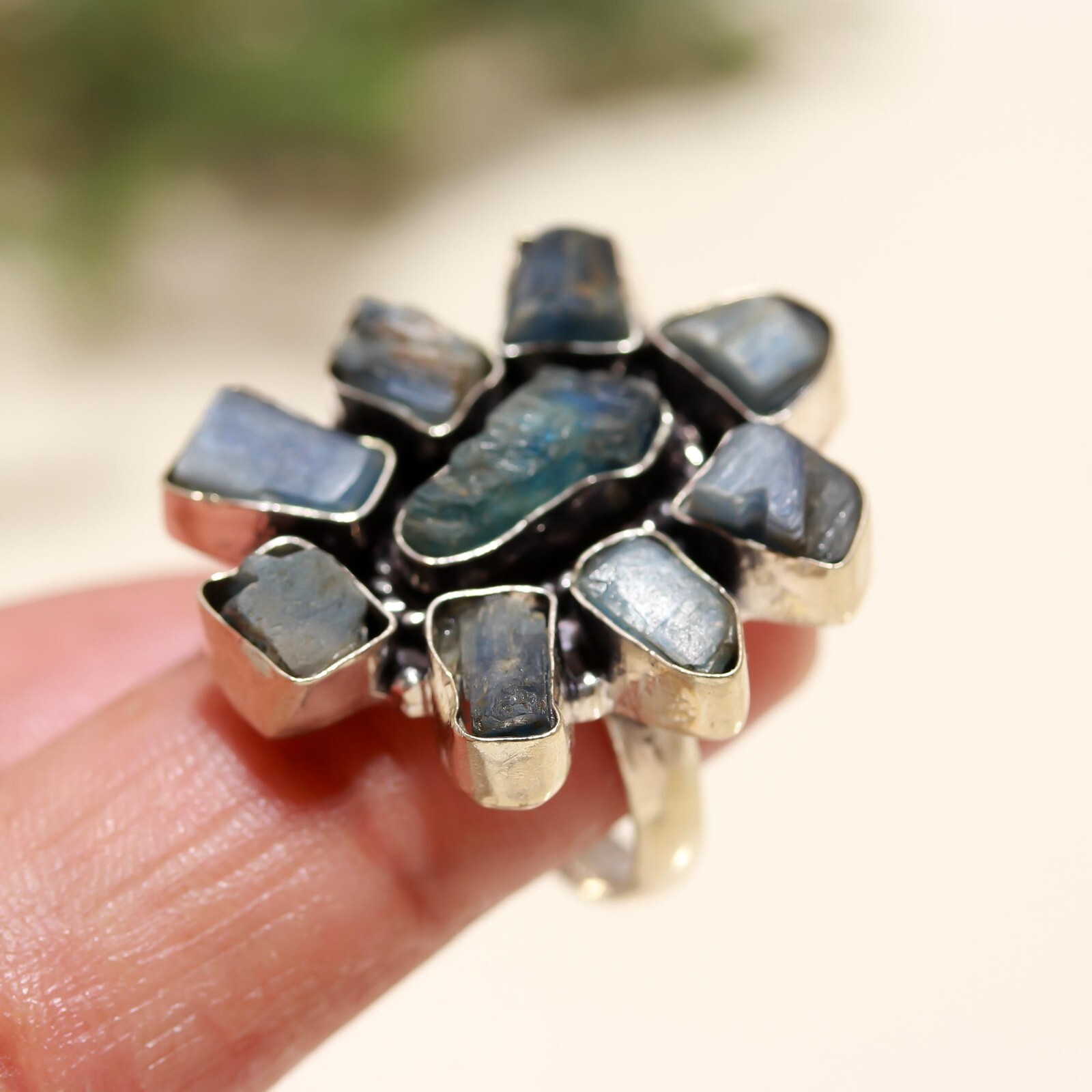 Natural Kyanite Raw Gemstone Ring 925 Sterling Silver Handcrafted Jewelry