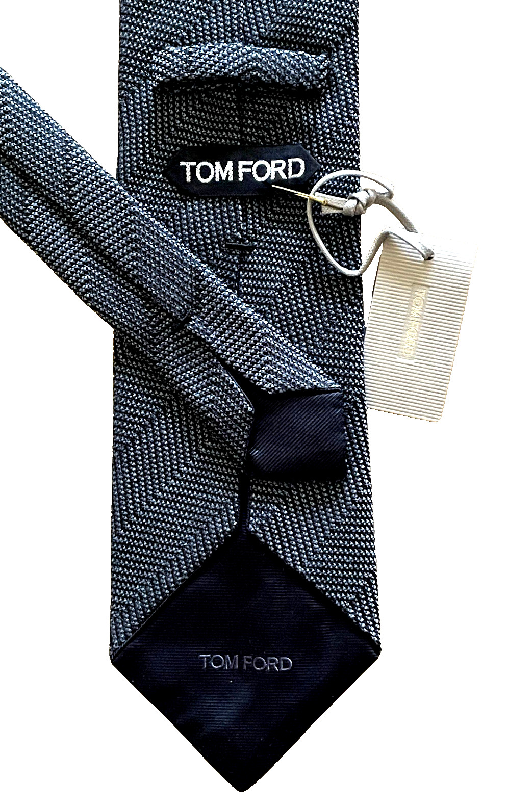 280 NWT TOM FORD Blue self stripes men's 3.6 woven Wool Silk neck Tie Italy