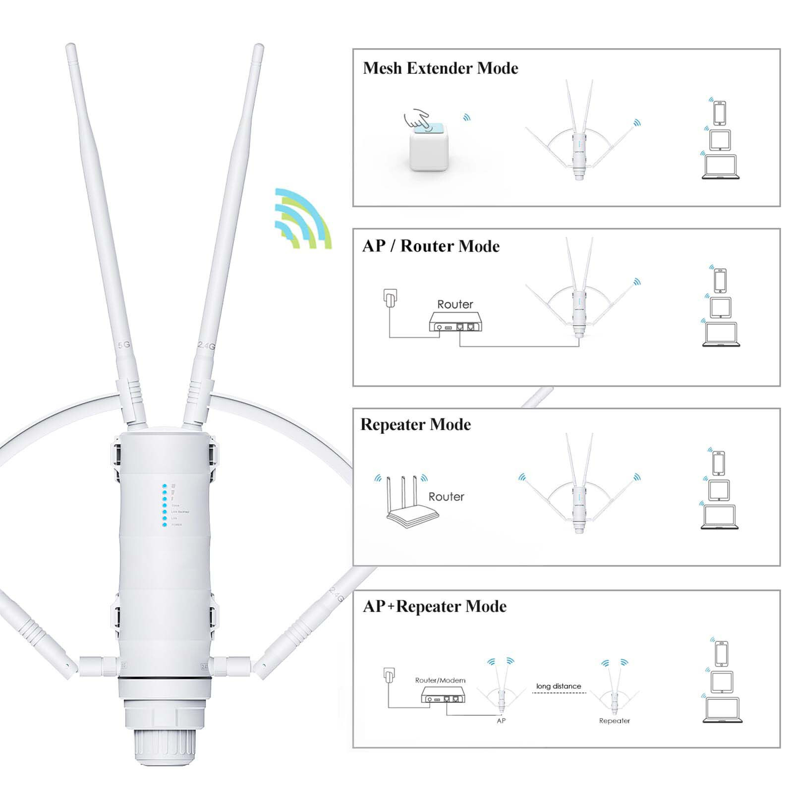 2025 AC1200 Outdoor WiFi Extender, Long Range Dual Band WiFi Signal Booster Weat