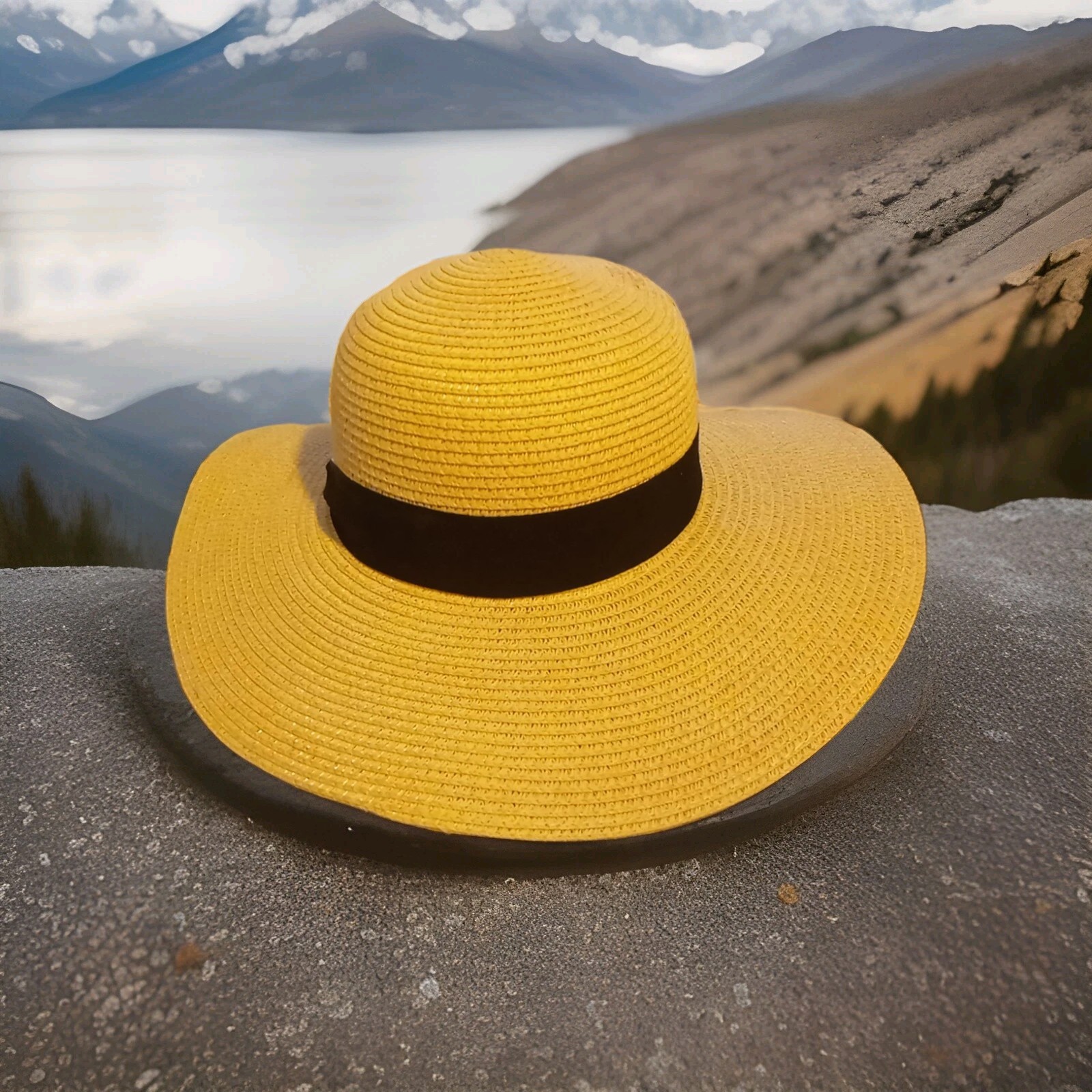 как выглядит ladies wide brim Tan Woven sun hat With Black Band фото