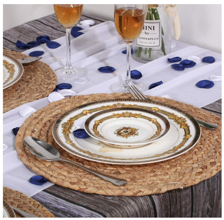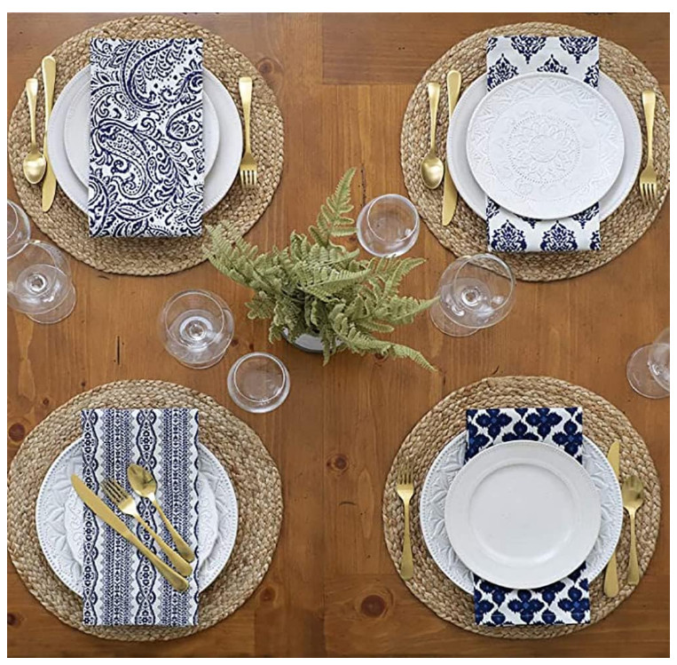как выглядит 4pcs 13" Round Woven Rattan Placemats, Natural Straw Table Decor Mats фото