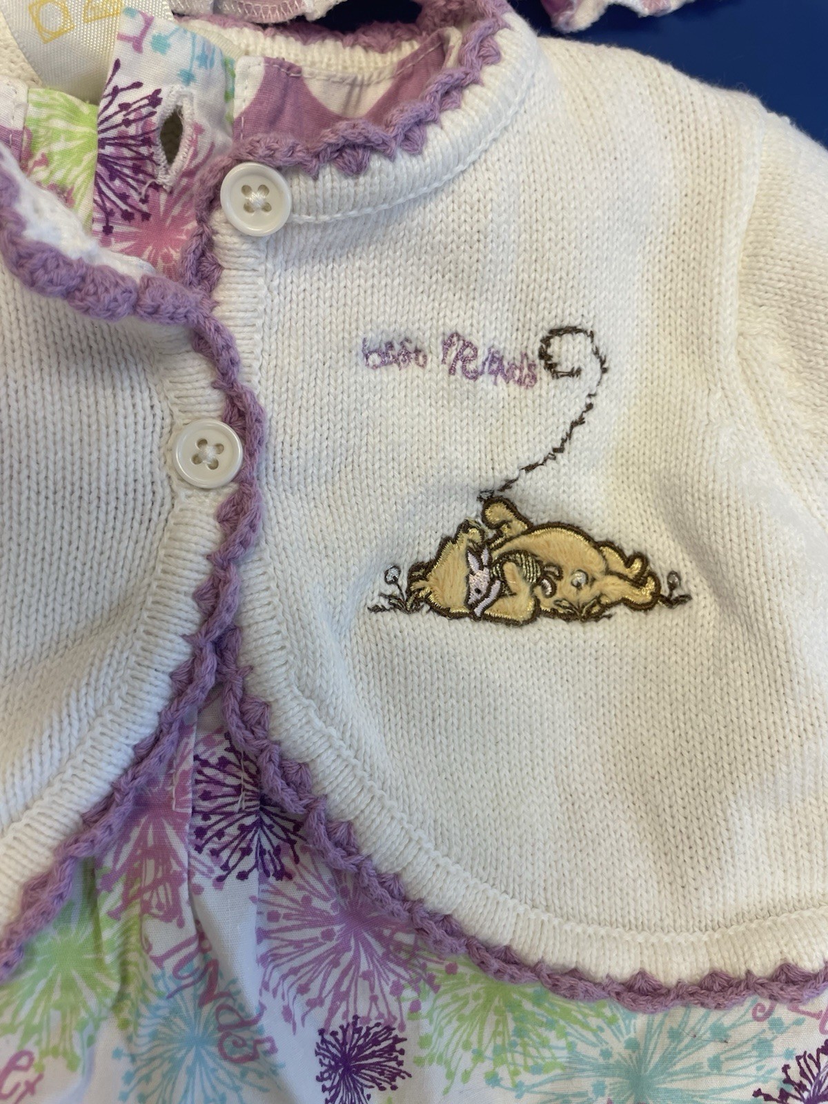 как выглядит Winnie The Pooh Vintage 3 Piece Outfit, Dress, Sweater, Hat, 12-18 Months Size фото