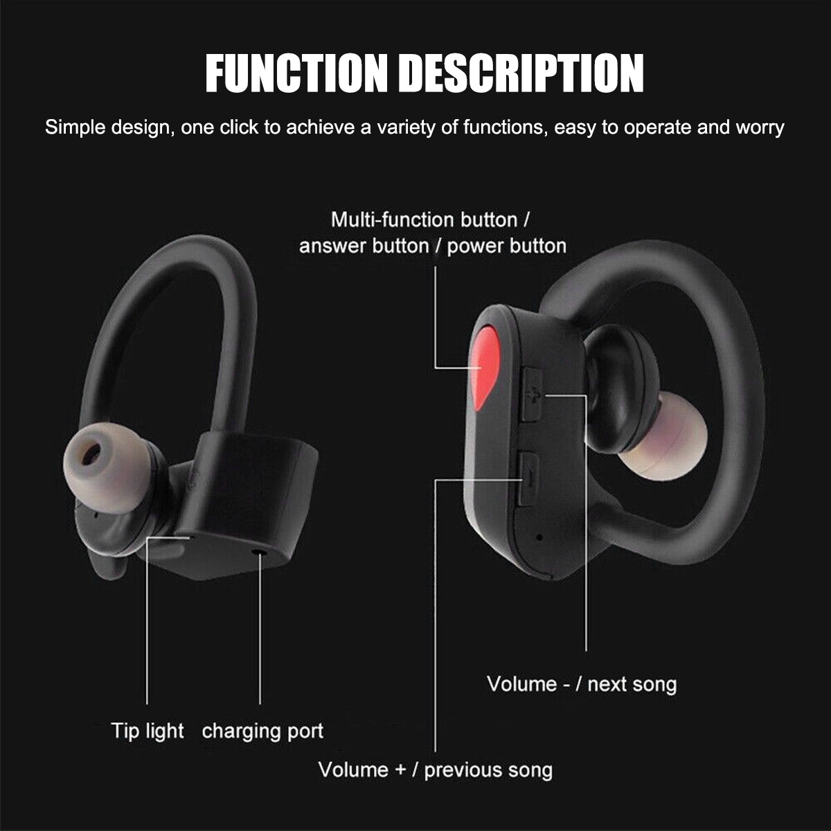 TWS Bluetooth Headset Wireless Earphones Earbuds Headphones Stereo Mini Ear Hook