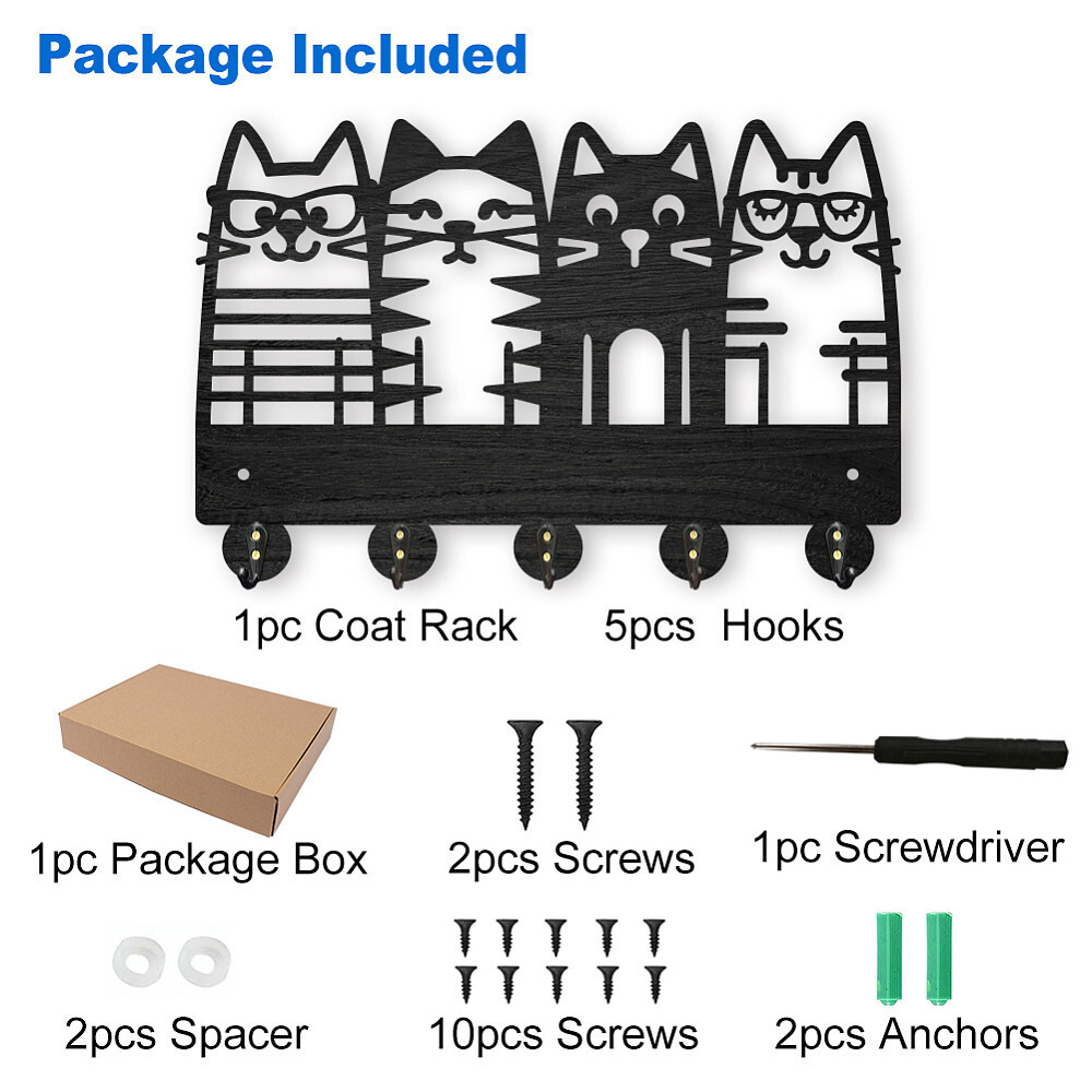 1set Wood Iron Wall Mounted Hook Hangers tive Organizer Rack with 2pcs Screws