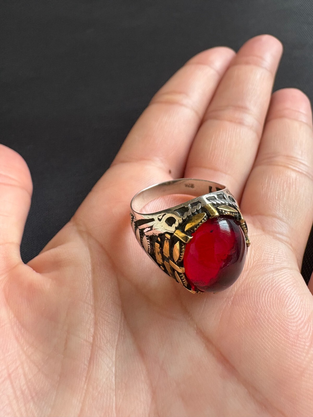 как выглядит 925 Sterling Silver Ring Cabochon Red Ruby Ring Handcrafted Ring Size 8.5 US фото