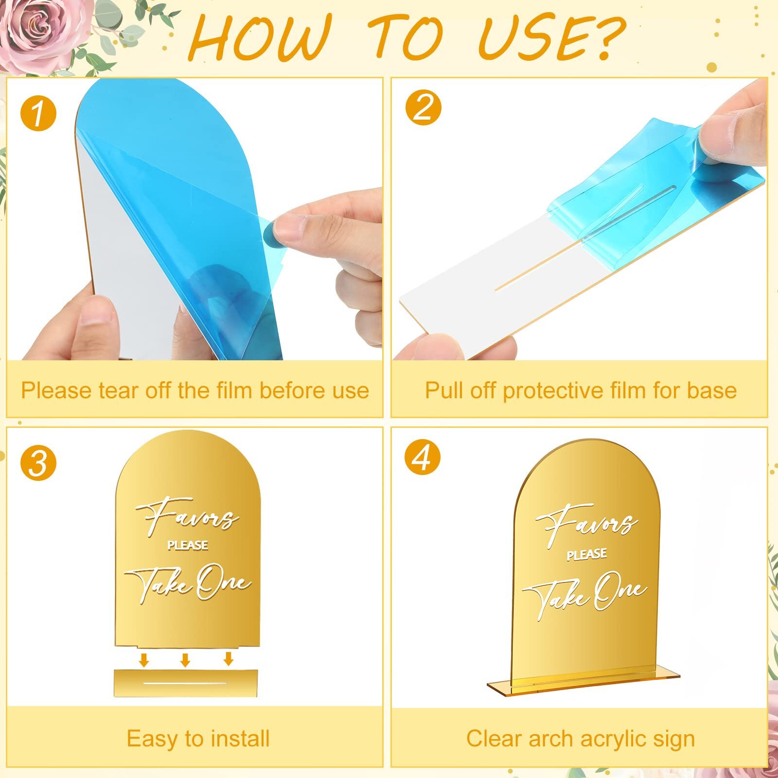 Woanger 4 Pcs Arch Acrylic Wedding Signs for Reception with Stand Gold Weddin...