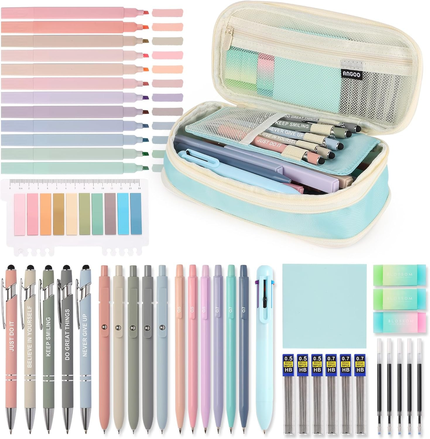 56 PCS Aesthetic School Supplies Cute Stationary Set with Large Pencil Case, ...