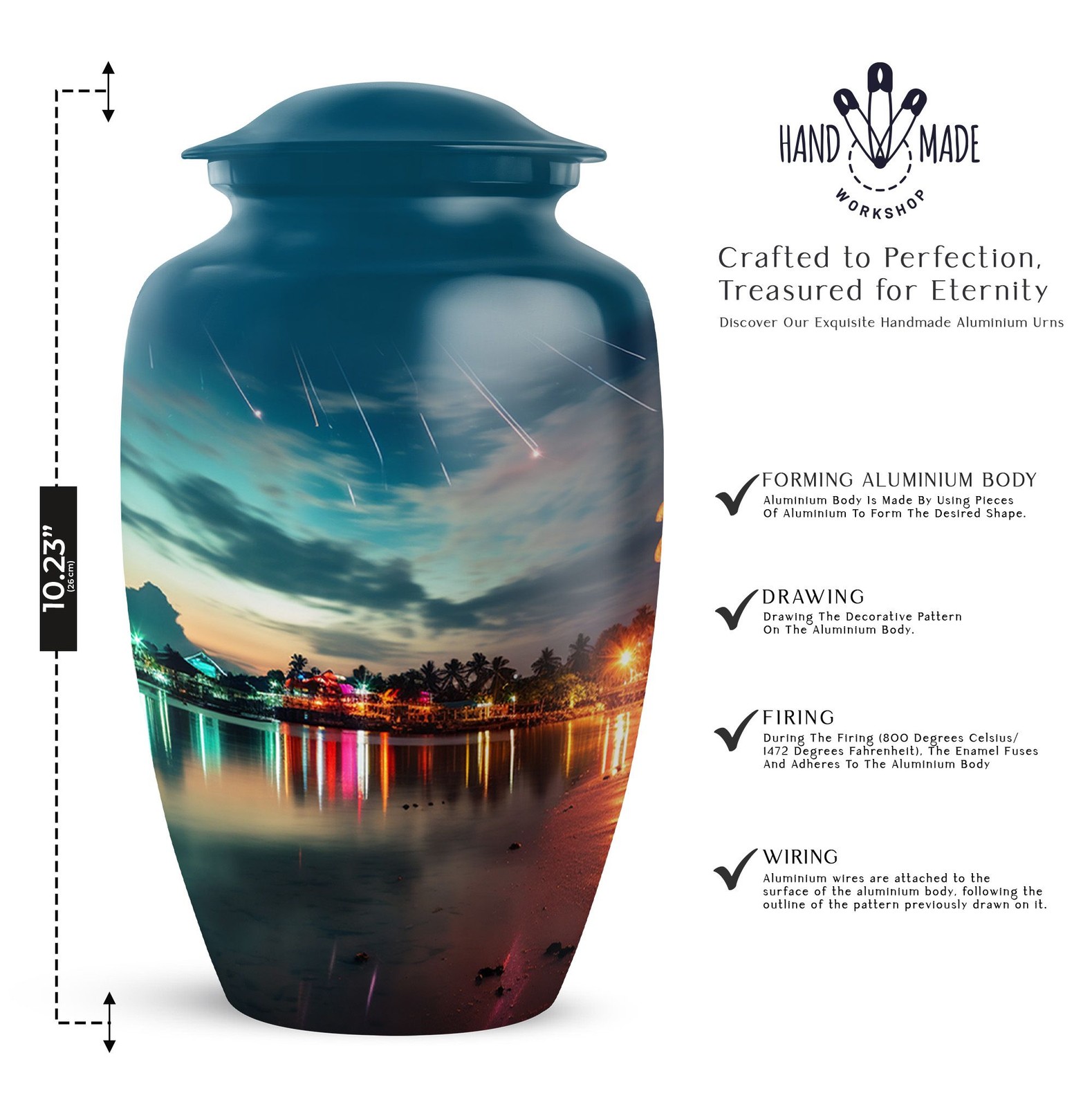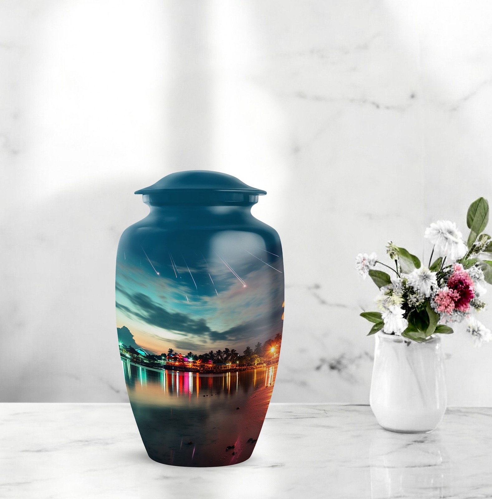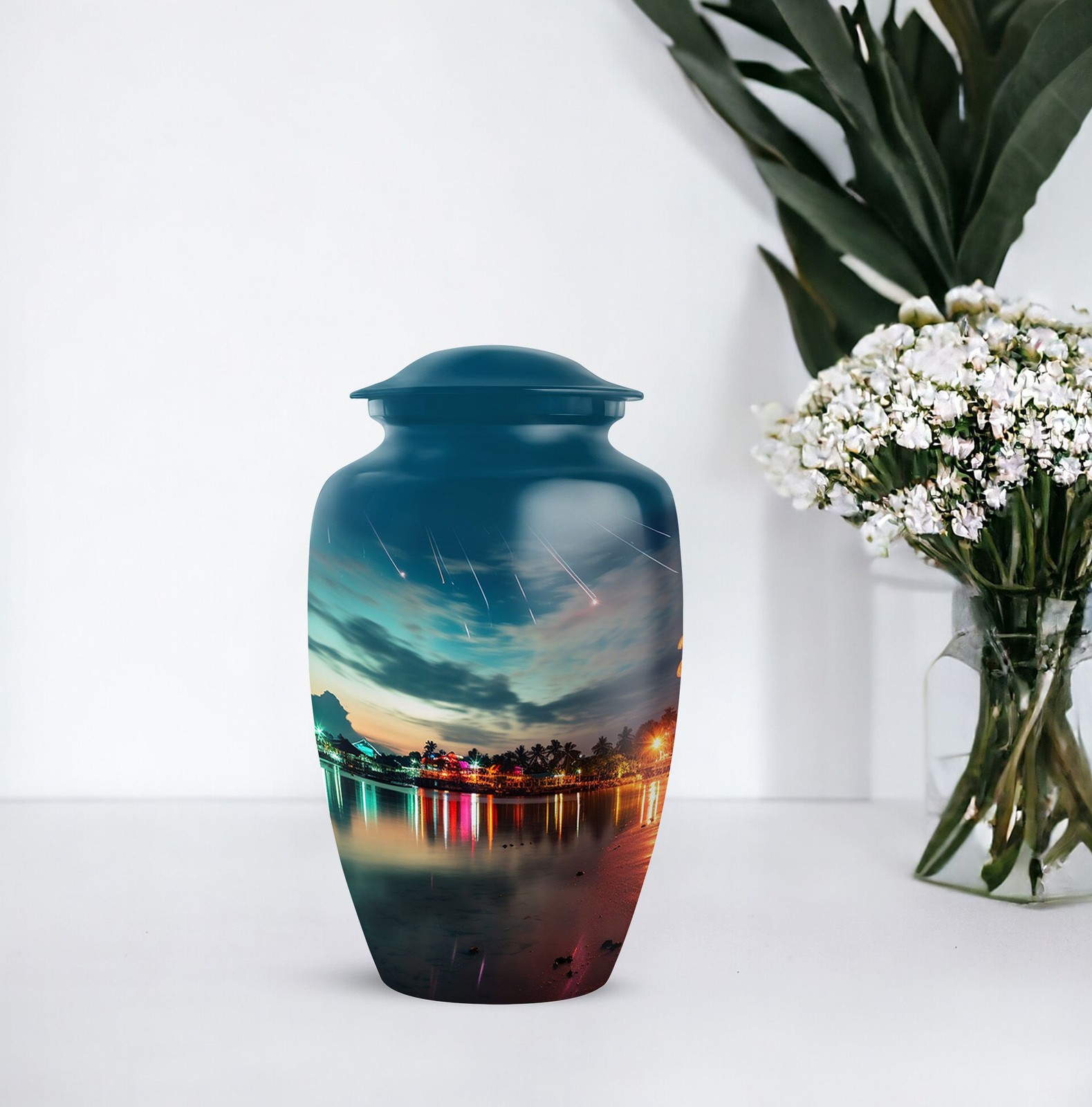 • Beach 10 Inch Burial Cremation Jar for Men Ashes Memorial Funeral Decorative